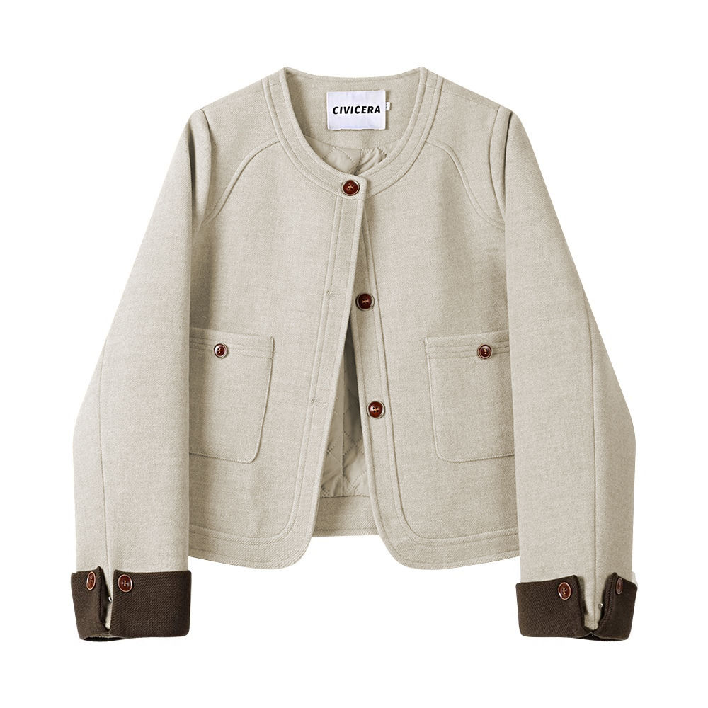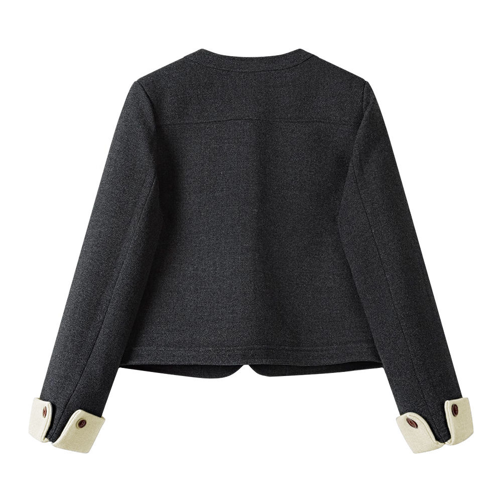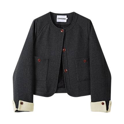 短款毛呢外套女秋冬新款夹棉加厚小个子复古圆领小香风外套上衣潮