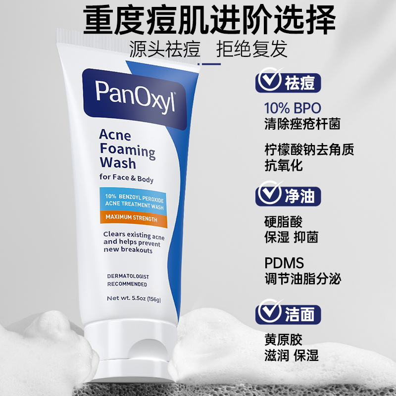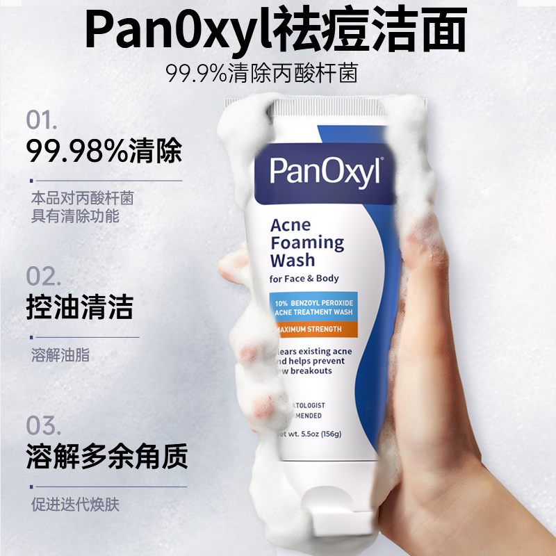 PanOxyl10%bpo过氧化苯甲酰祛痘洗面奶控油去痘洁面乳男女青少年