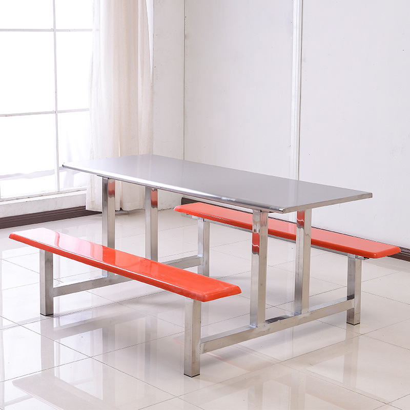不锈钢连体餐桌椅食堂餐桌椅组合公司员工餐桌椅六人位餐桌椅