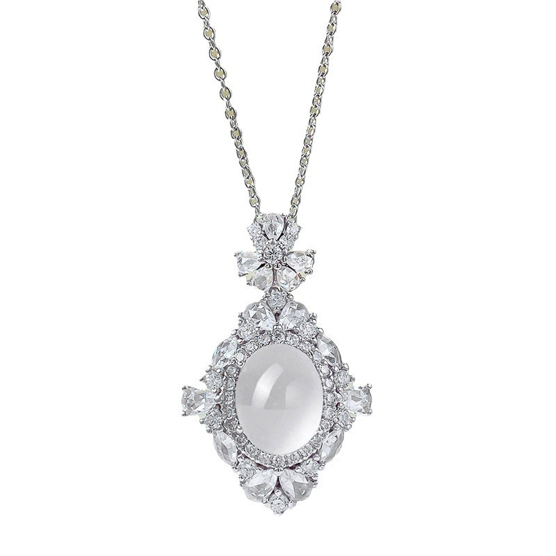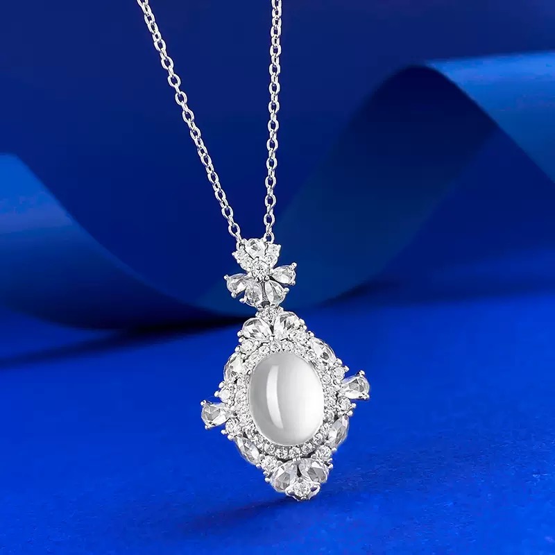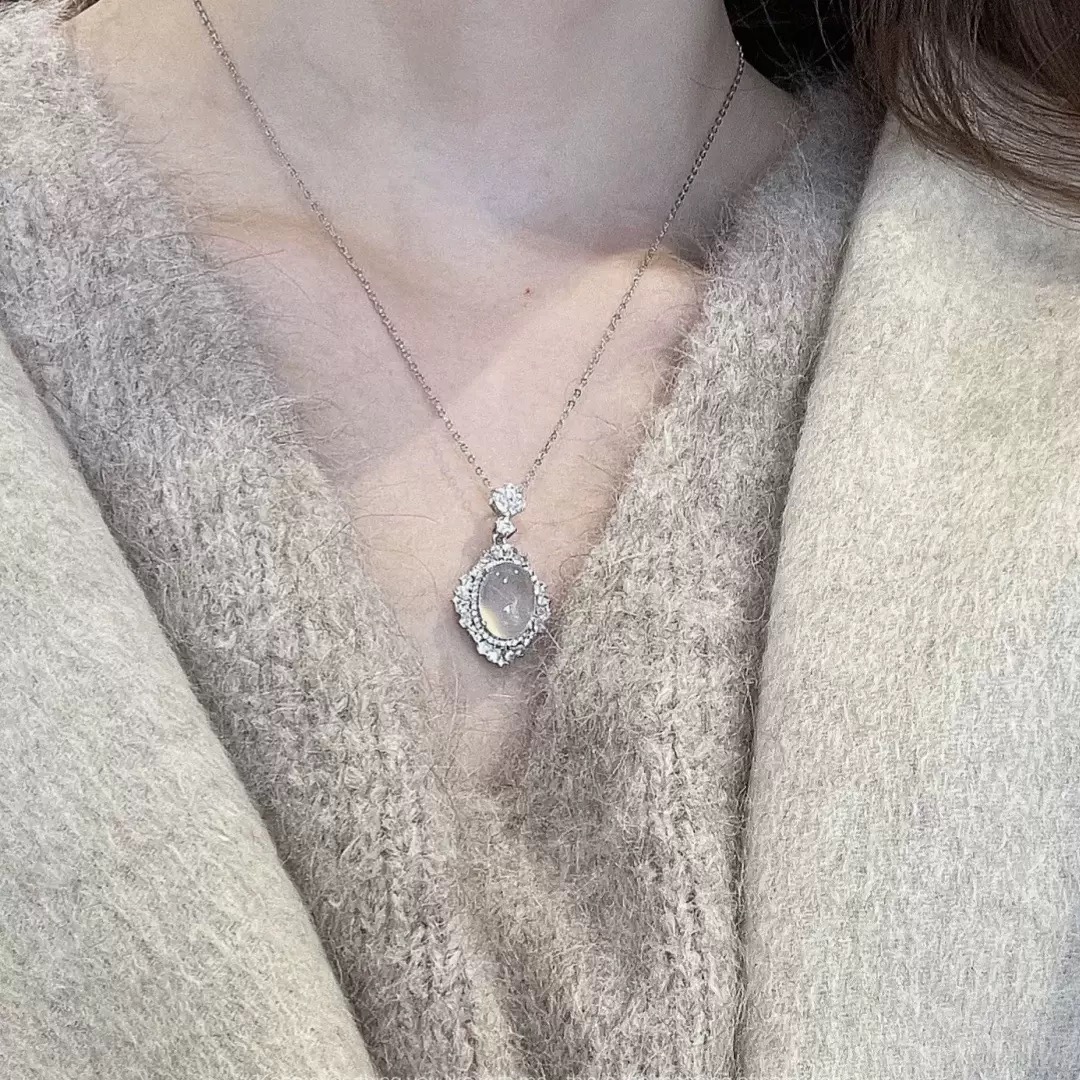 柏诗艾菲925纯银水沫玉高冰种白月光吊坠玉髓玛瑙项链节日证书