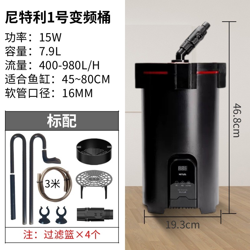尼特利变频过滤桶鱼缸外置过滤器三合一净水过滤系统循环兰保滤桶