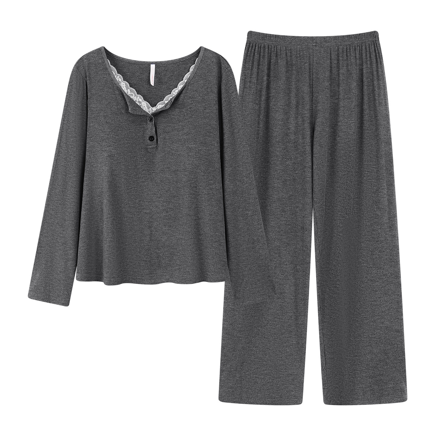 带胸垫睡衣女春秋款长袖长裤可外穿莫代尔棉家居服套装简约秋冬季