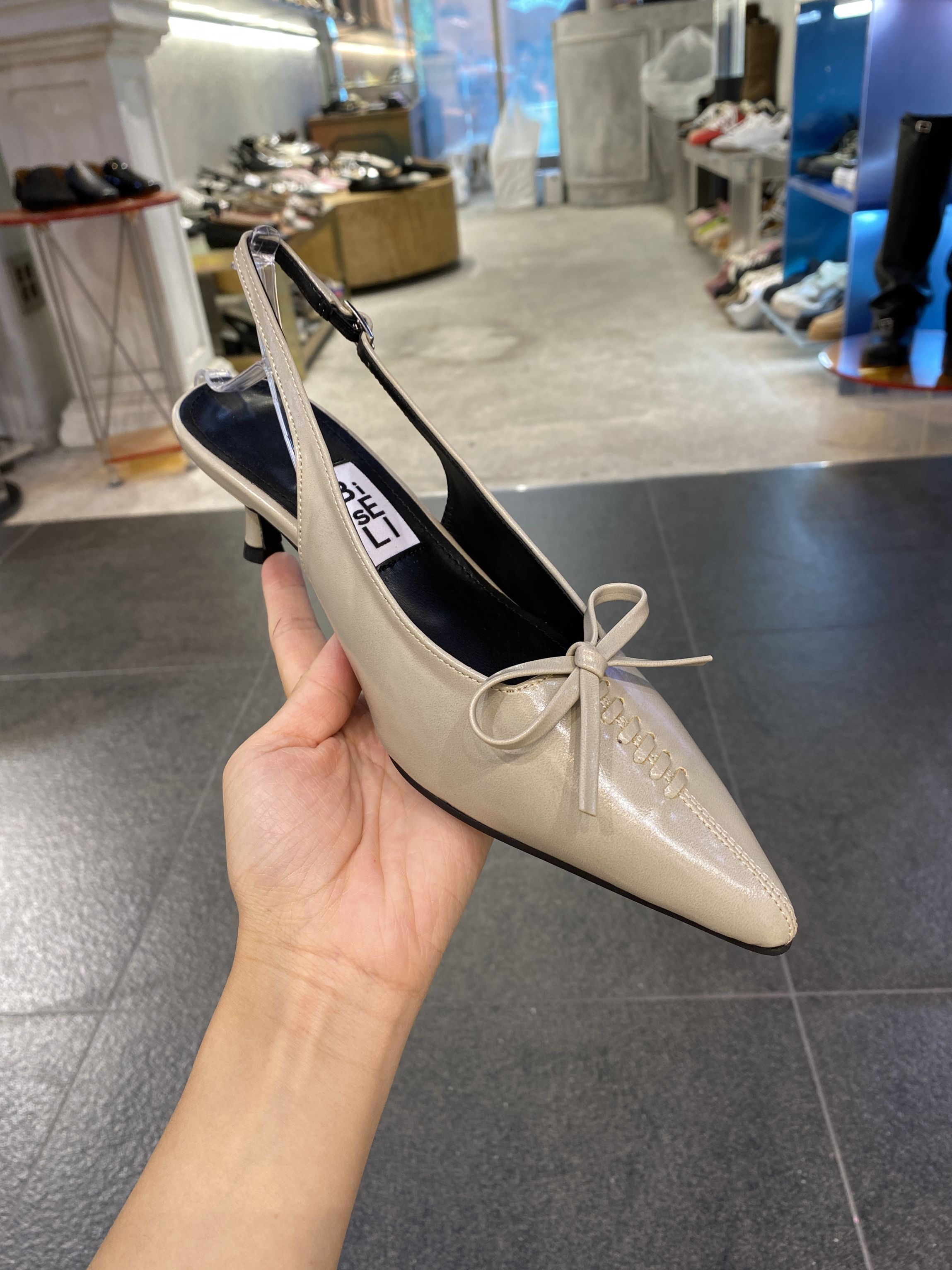 小小苏韩国直邮编织系带蝴蝶结浅口细中跟凉鞋后绊带尖头高跟鞋