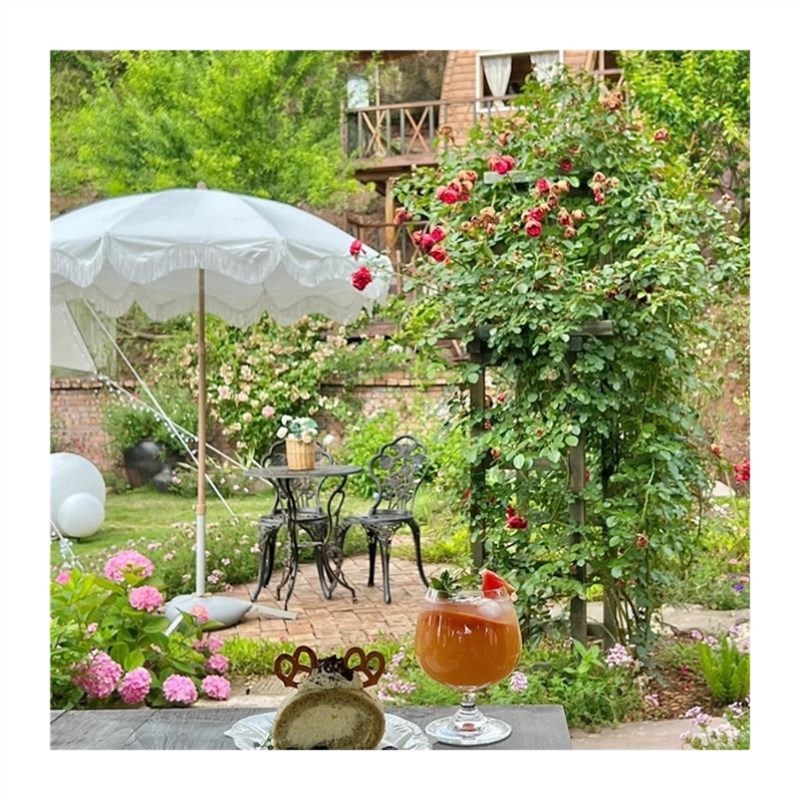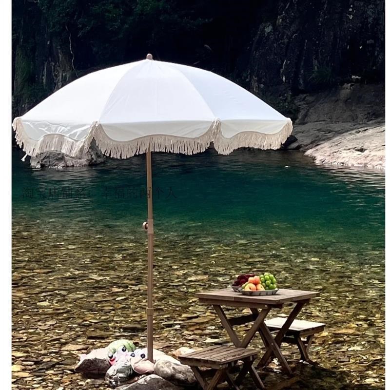 家用咖啡店露台遮阳伞户外花园阳台棉质流苏花边休闲防晒庭院伞