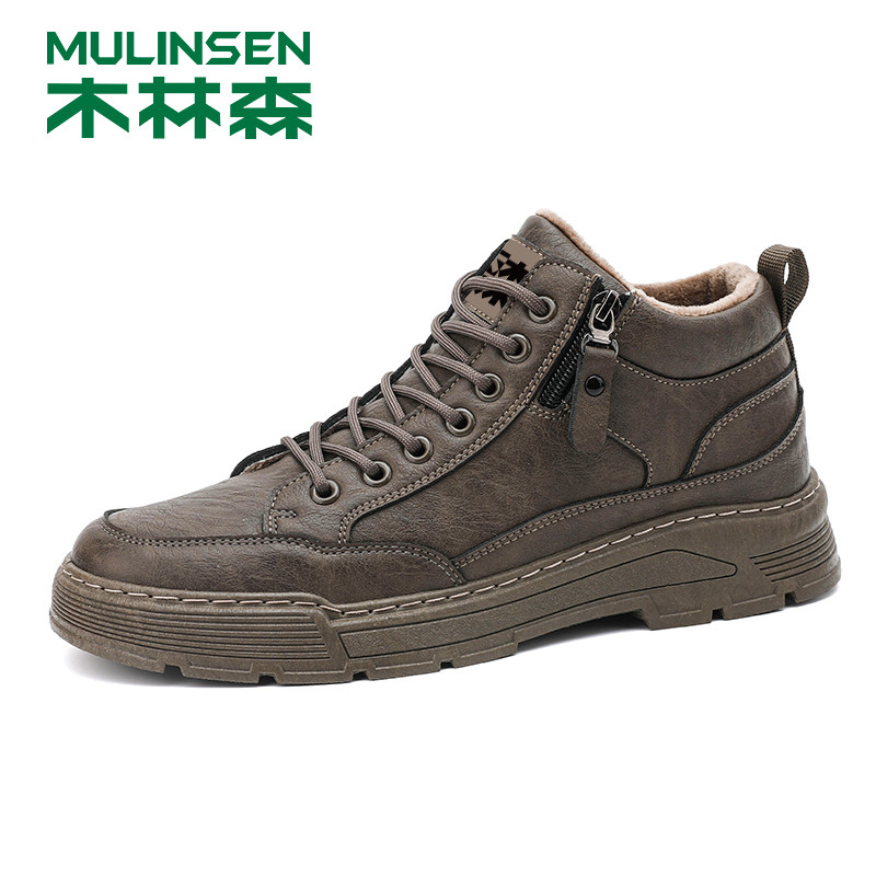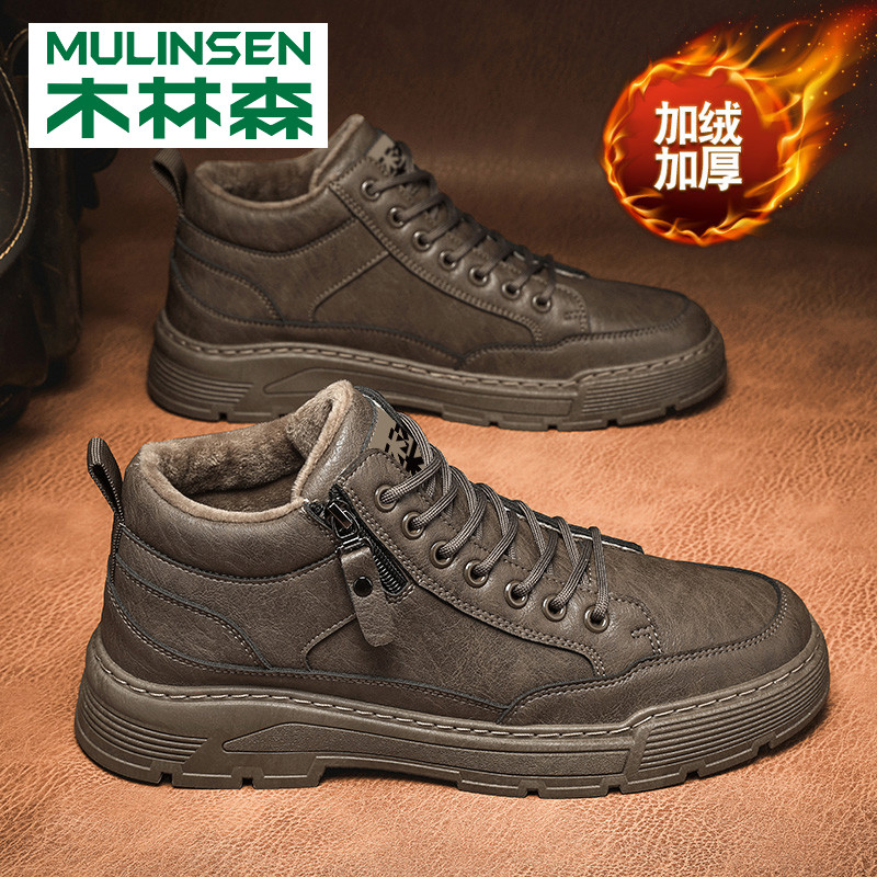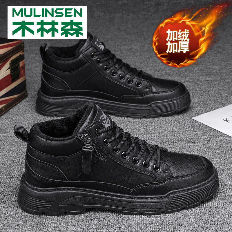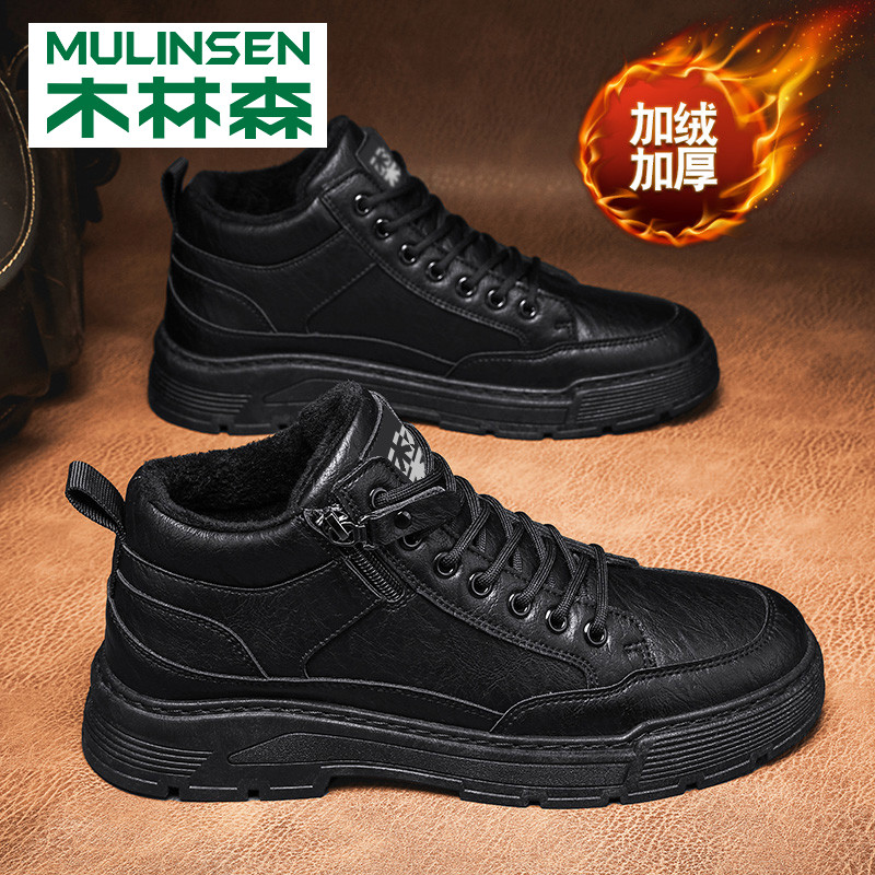 木林森棉鞋男冬季加绒保暖皮鞋休闲运动高帮一脚蹬马丁短靴雪地靴