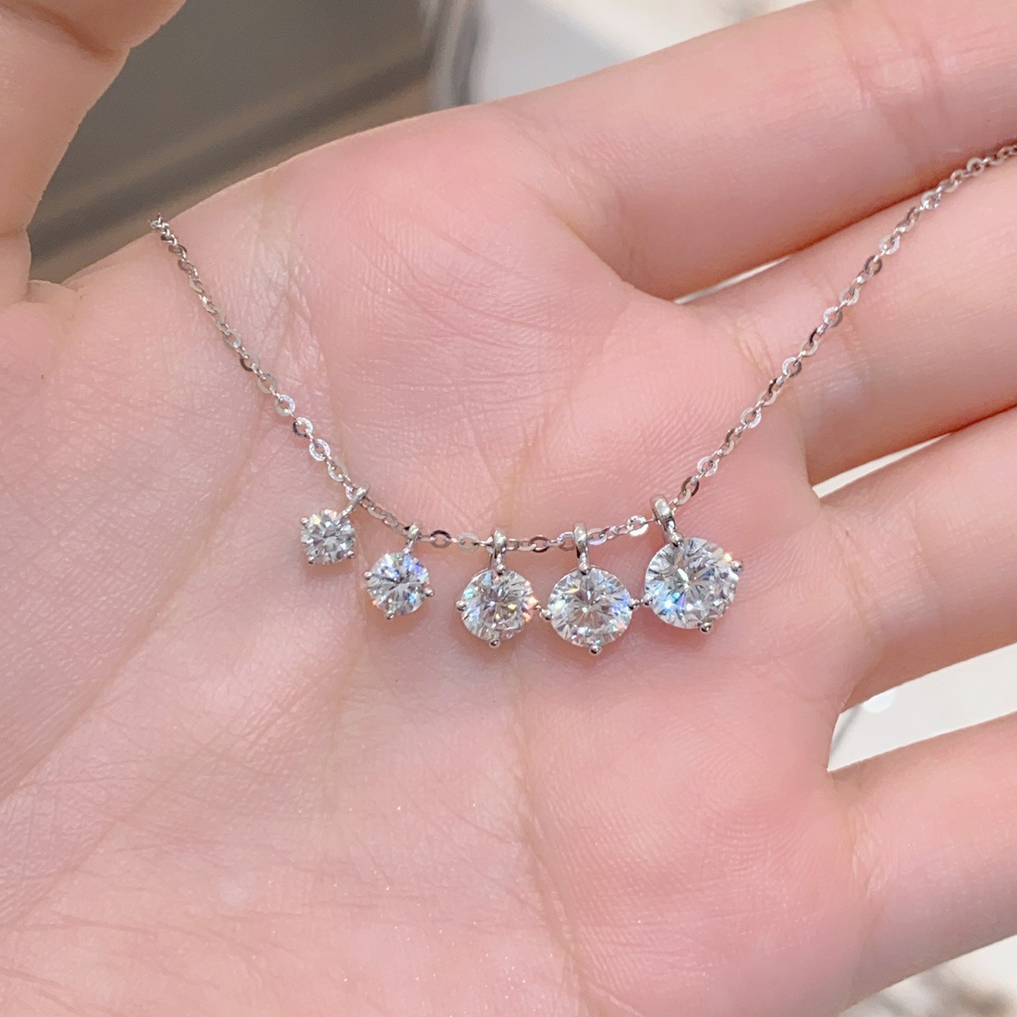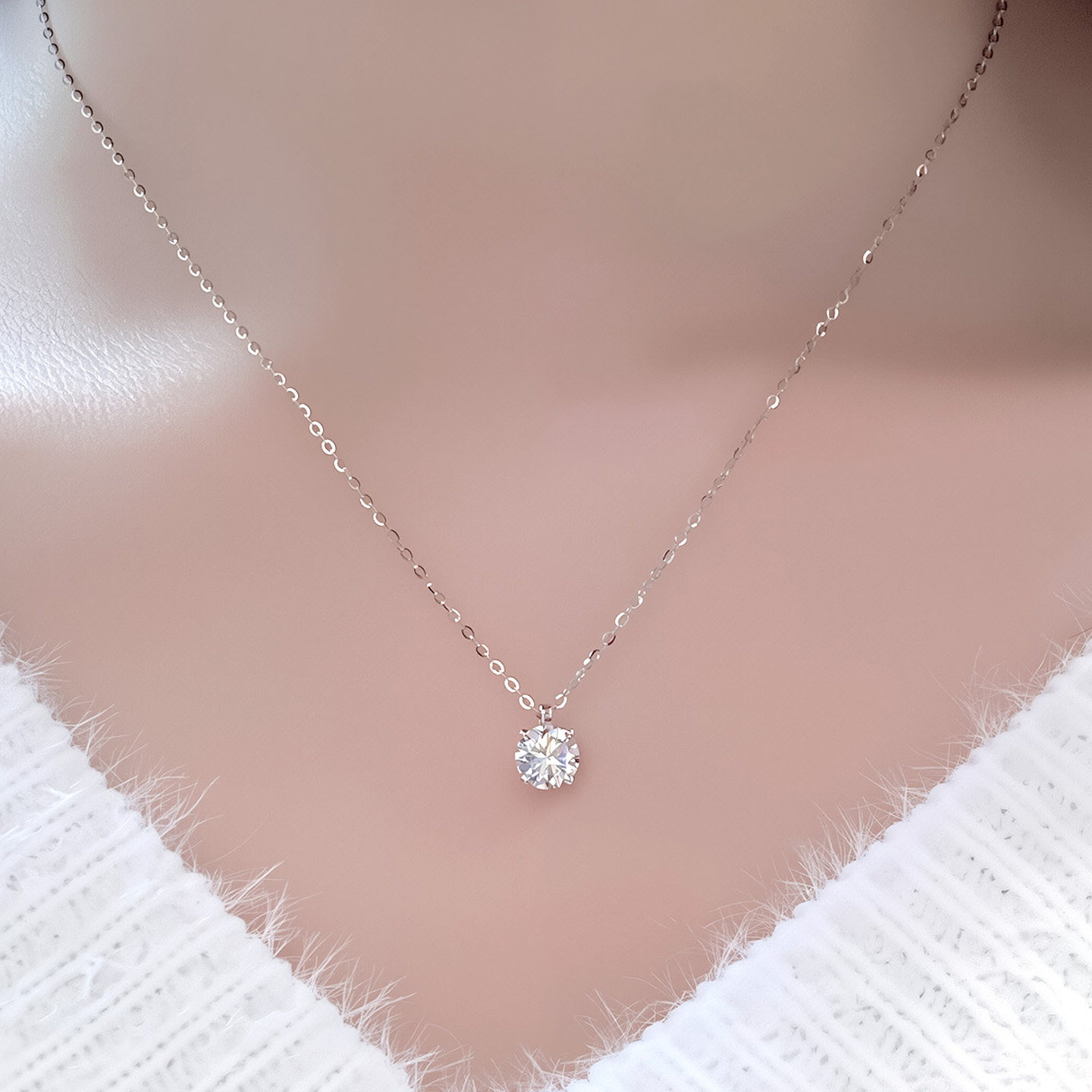 18k白金培育钻石项链小滴溜