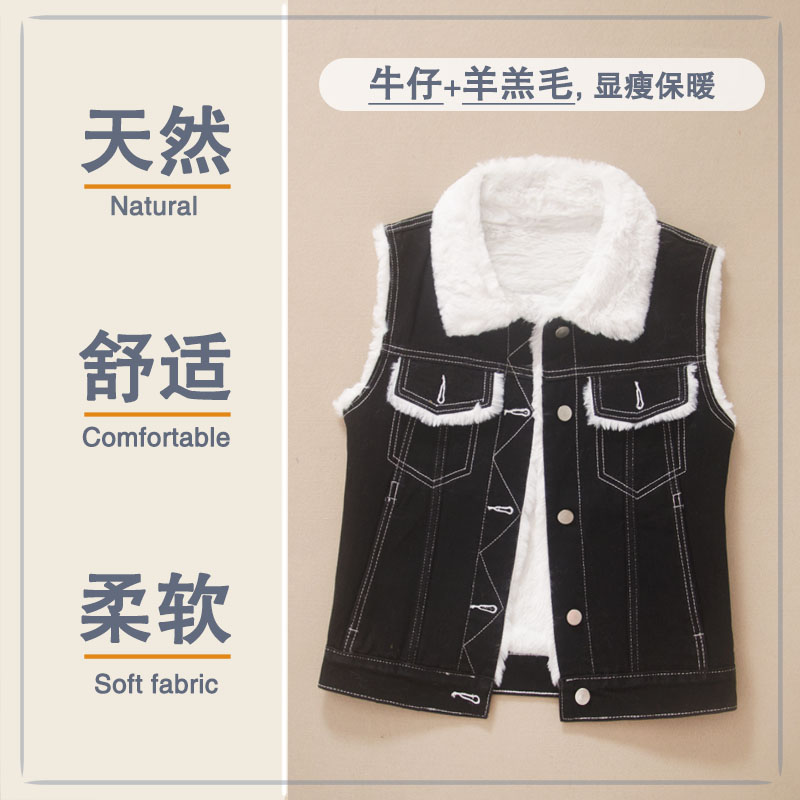 牛仔马甲女秋冬小个子羊羔毛加绒女士新款2025年拼接加厚加棉背心