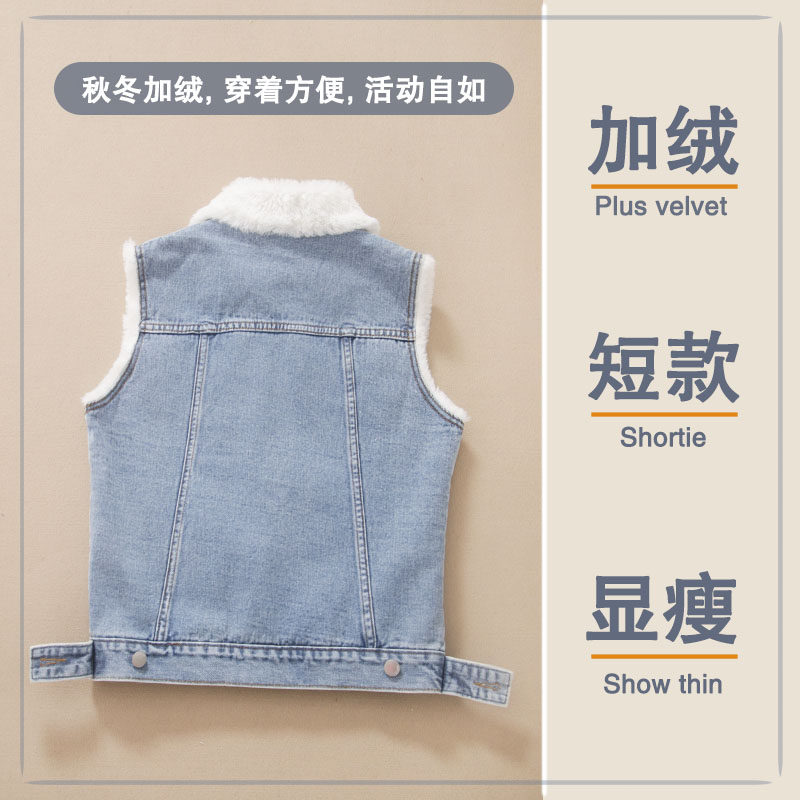 小个子冬季马夹单排扣短牛仔加绒