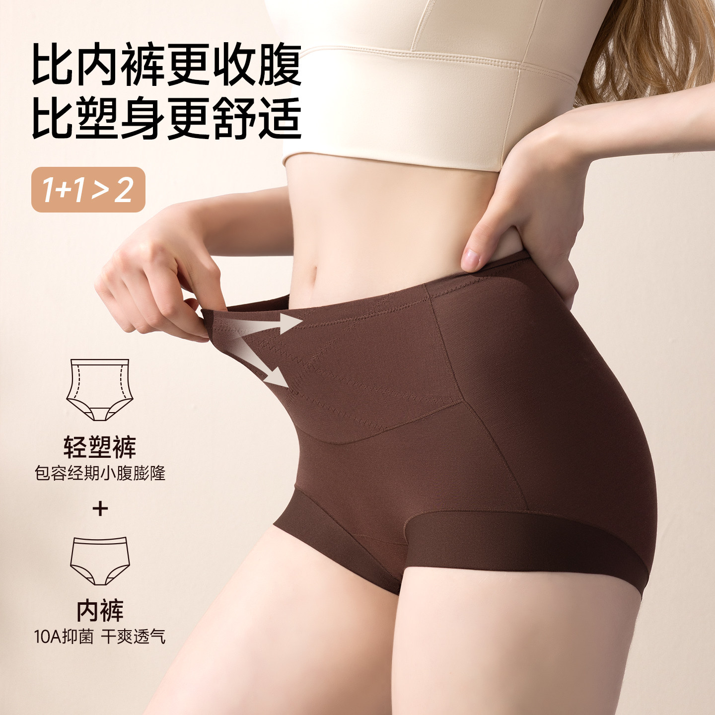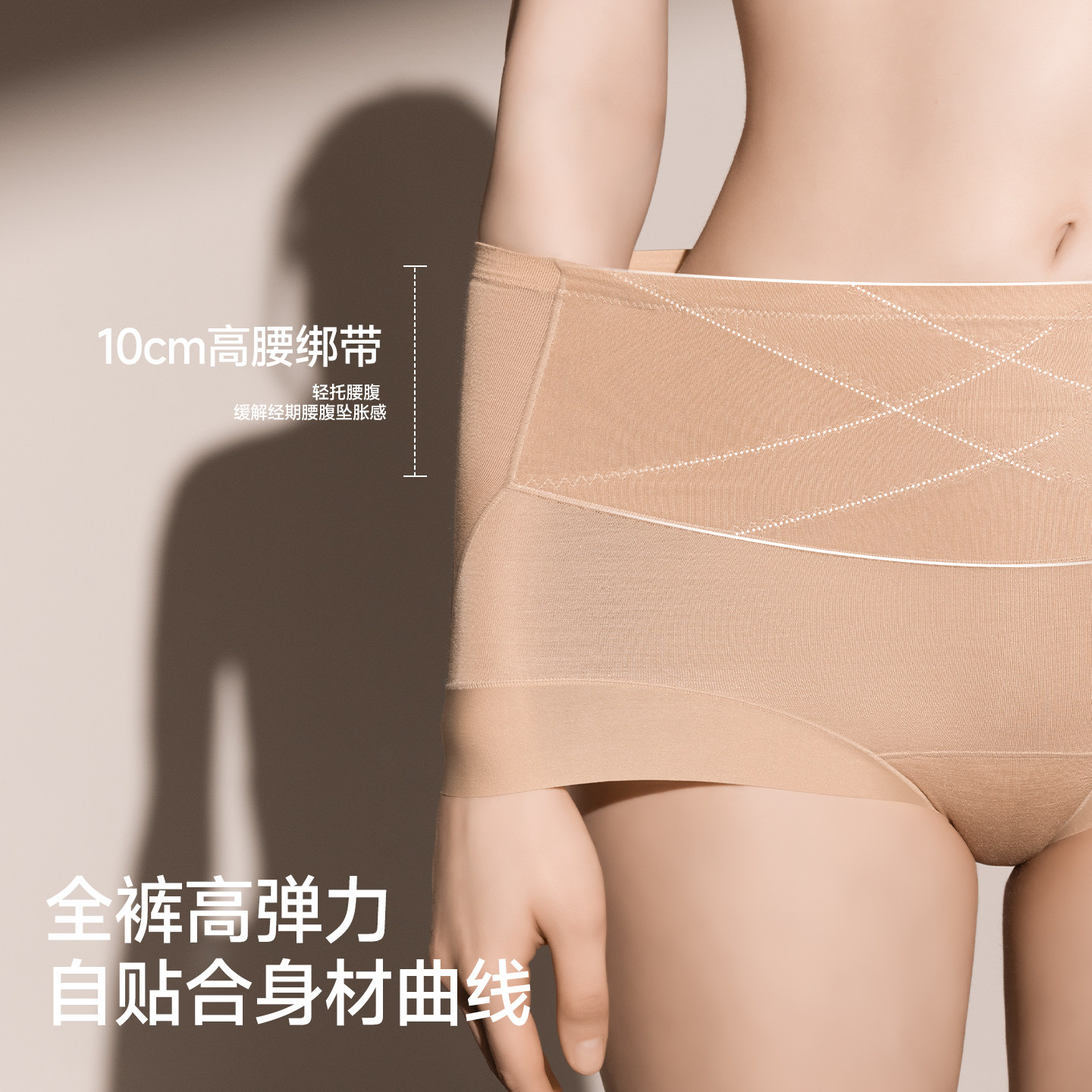 婷美口袋莫代尔高腰生理裤蚕丝档透气大码高弹2026新款三角内裤女