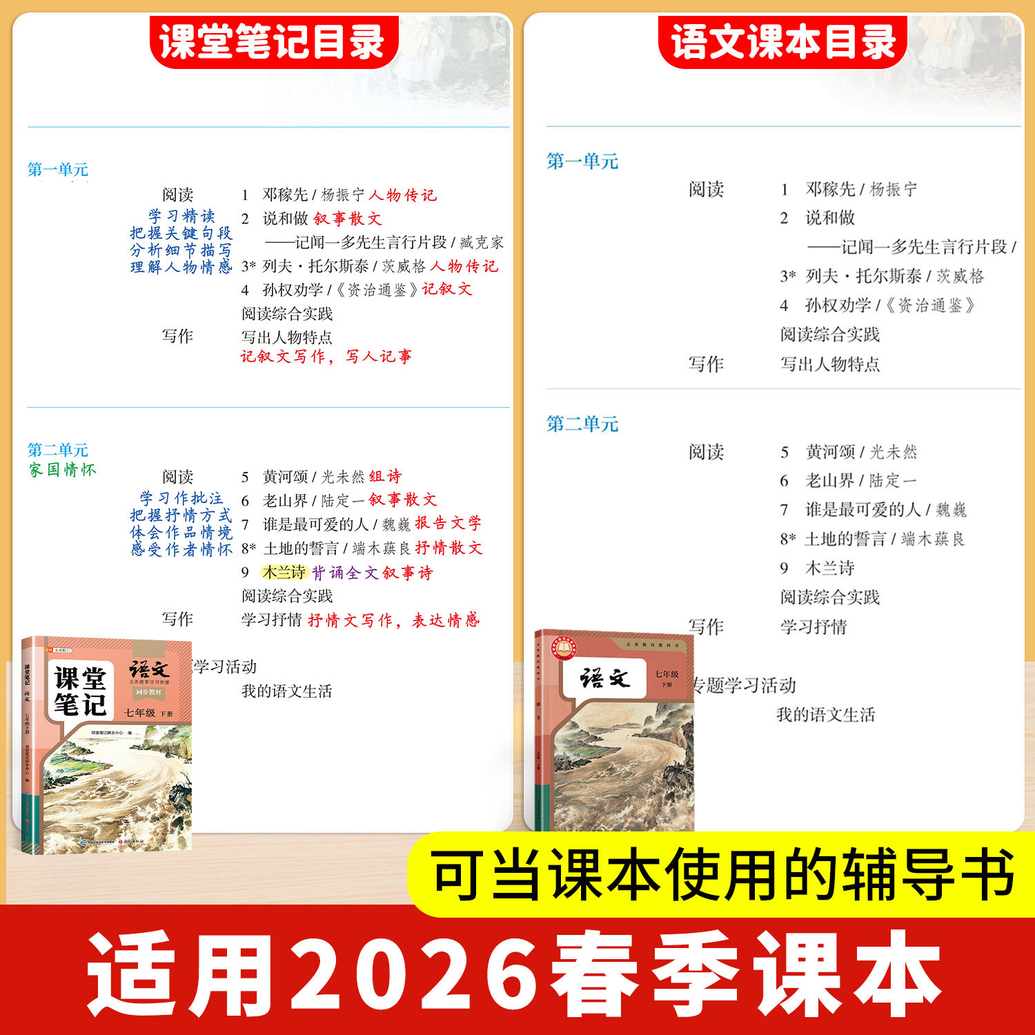 【斗半匠】2026适用课堂笔记七年级下册上册语文人教版七下初一新课本全套预习同步课本教辅资料7下语文书中学随堂笔记学霸解读