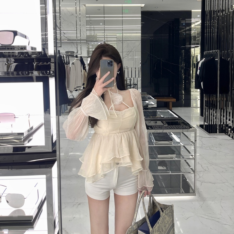 M900雪纺衫2025新款女长袖上衣夏季设计感小个子短款时尚气质洋气