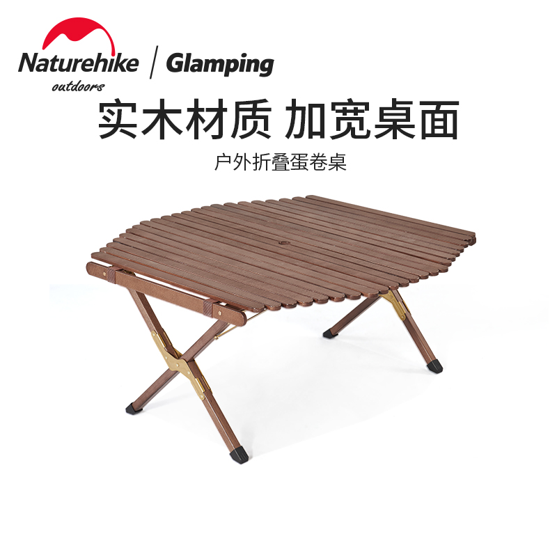 Naturehike挪客实木折叠蛋卷桌户外露营便携式烧烤野餐桌自驾桌子