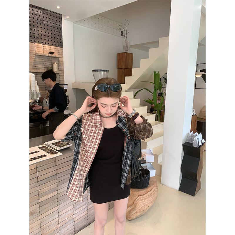 CHANGING REAL 加州左岸 美式格纹拼接衬衫女慵懒薄款防晒外套夏