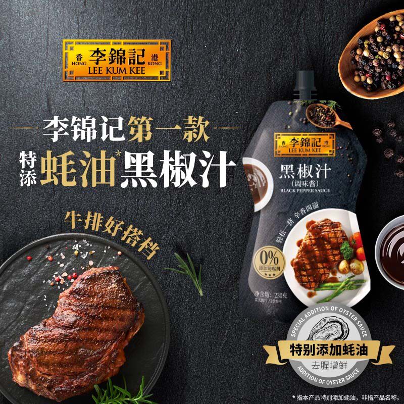 李锦记黑椒汁230g家用黑胡椒酱汁煎牛排烤肉酱意大利面调味酱尝鲜