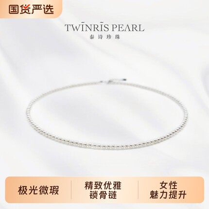 泰诗珍珠项链淡水珍珠小米珠锁骨链日常配饰925银强光颈链