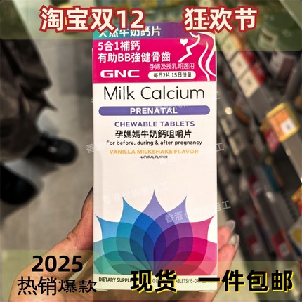香港代购GNC健安喜孕妇妈妈牛奶钙咀嚼片镁锌磷维生素D30粒 包邮