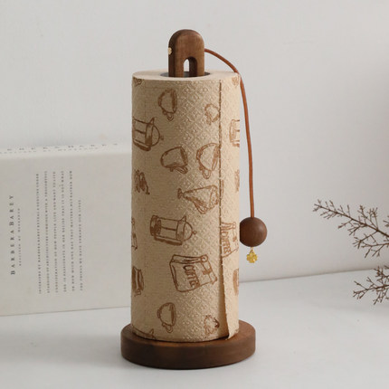 实木卷纸架厨房纸巾架创意免打孔立式卷筒桌面置物架收纳筒卷筒架