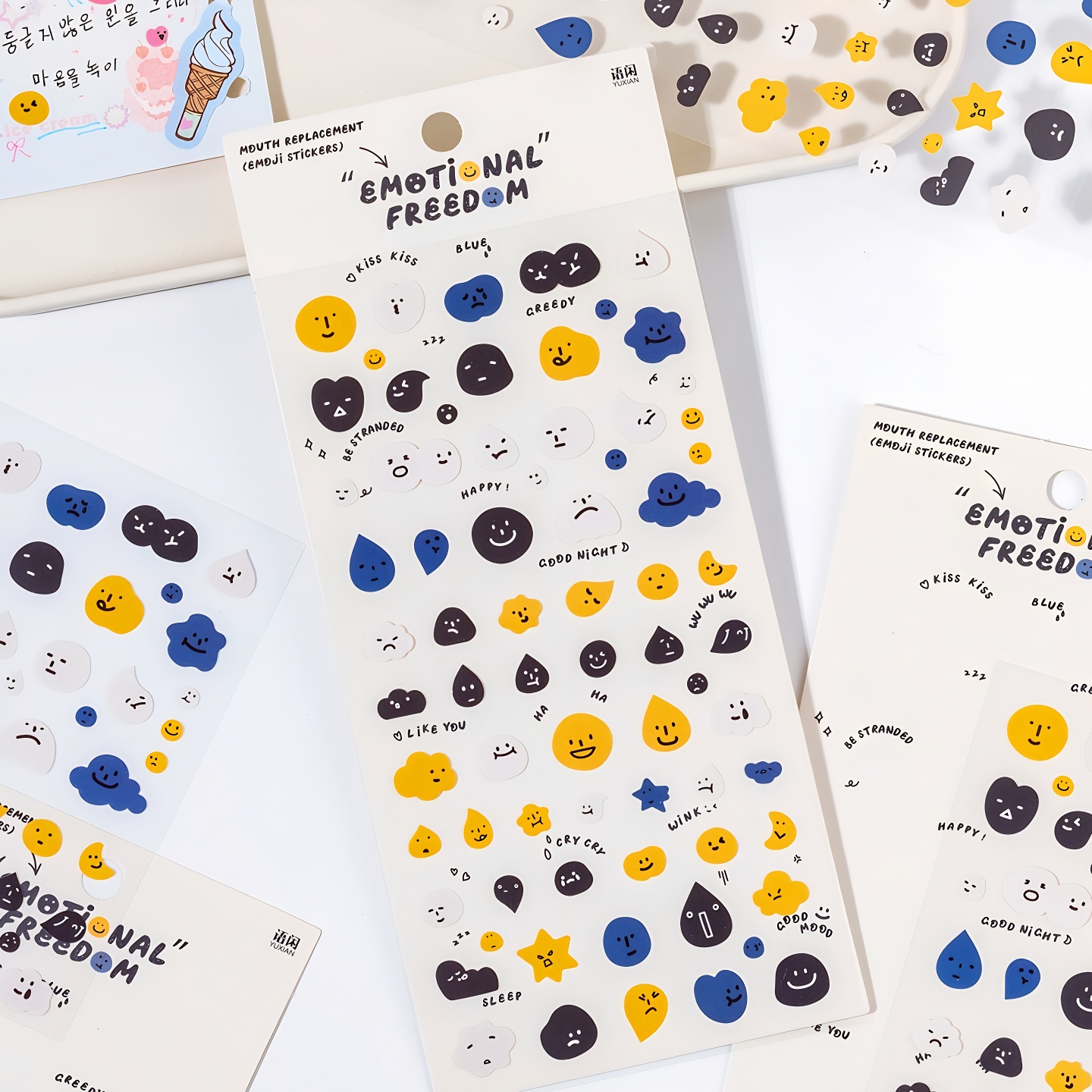 情绪自由表情包手帐贴纸可爱卡通彩色笑脸心情迷你小表情儿童贴画