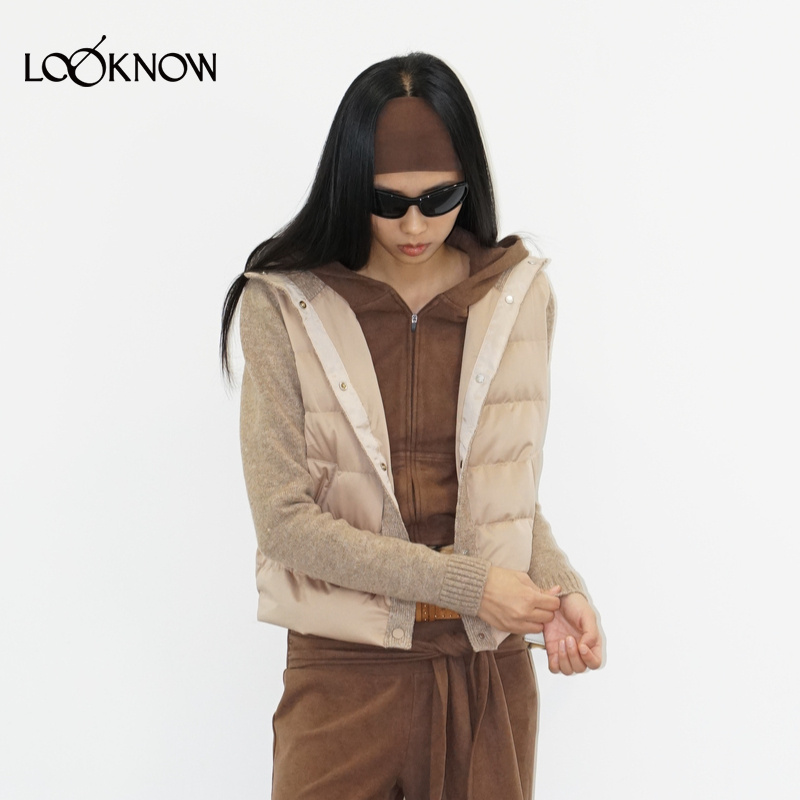 madeinormal X LOOKNOW25秋冬新品浅卡其色毛织拼接排骨羽绒服女