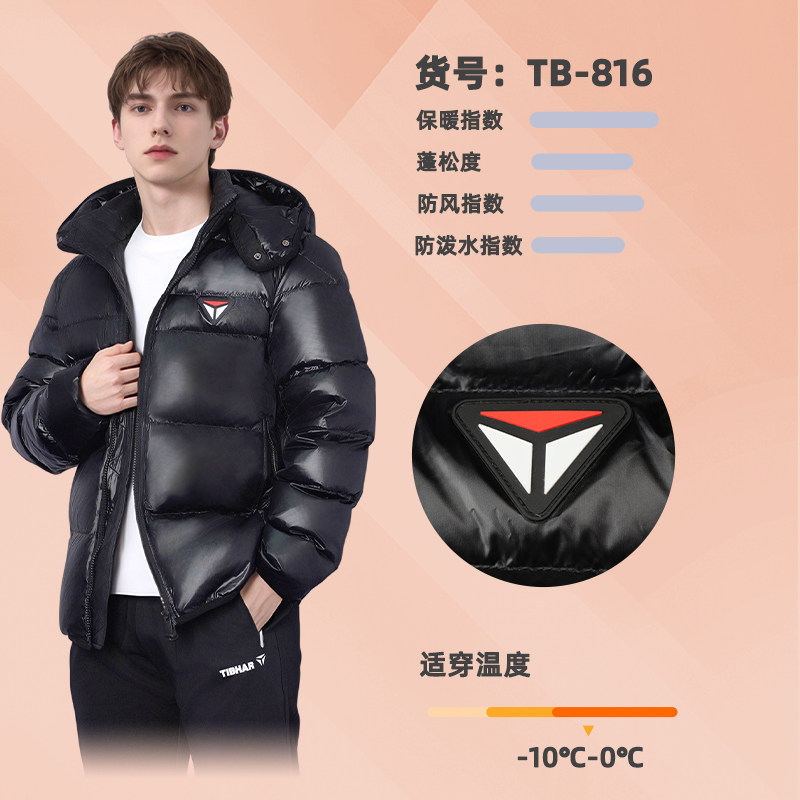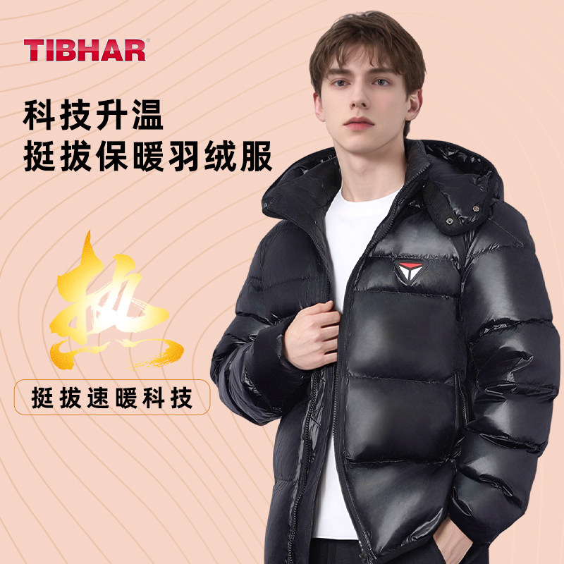 TIBHAR挺拔羽绒服正品乒乓球服冬季羽绒马甲外套保暖羽绒运动服