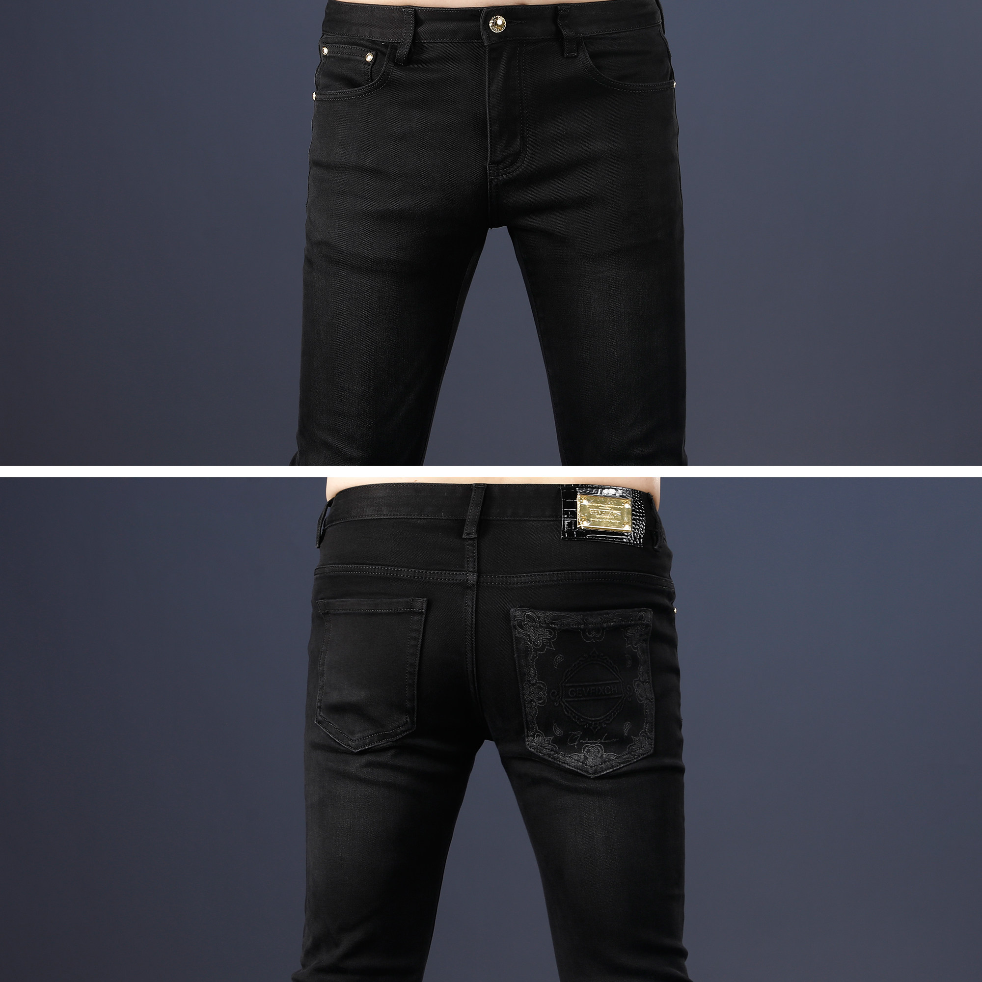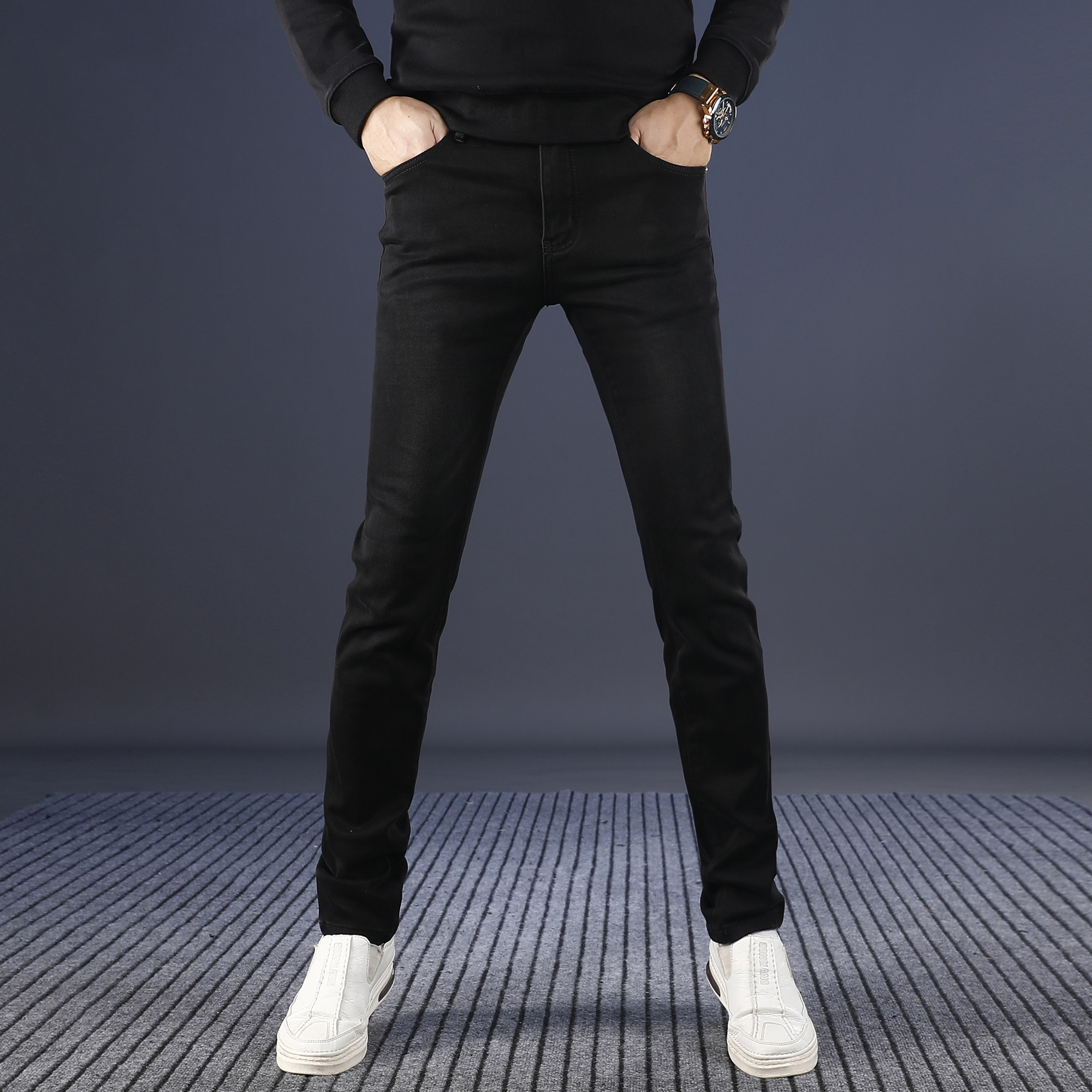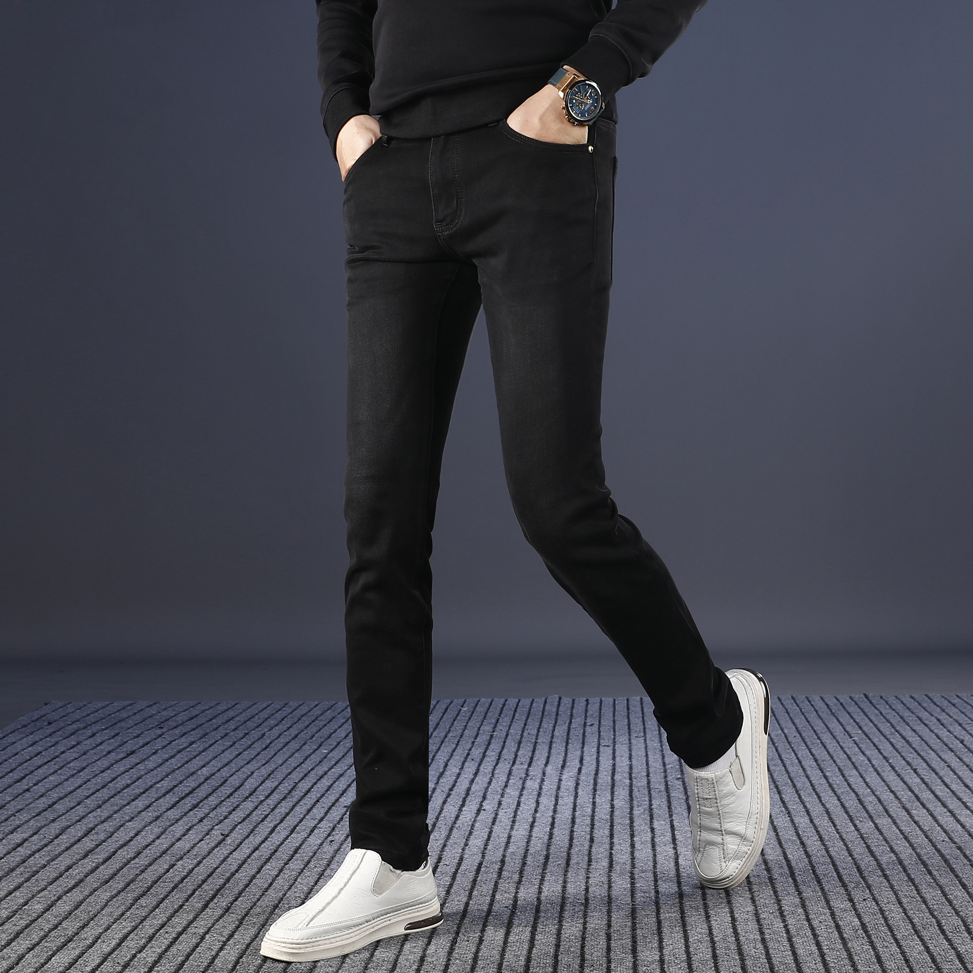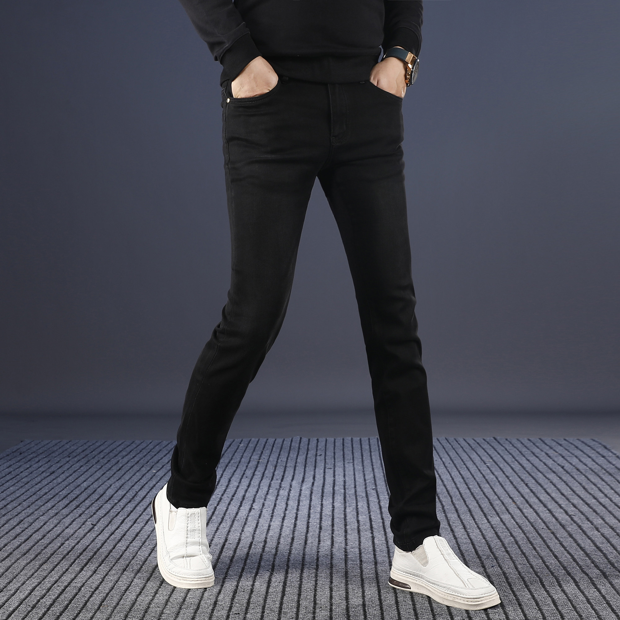 欧货潮牌黑色牛仔裤男款修身小脚2025新款秋冬季潮流休闲男士裤子