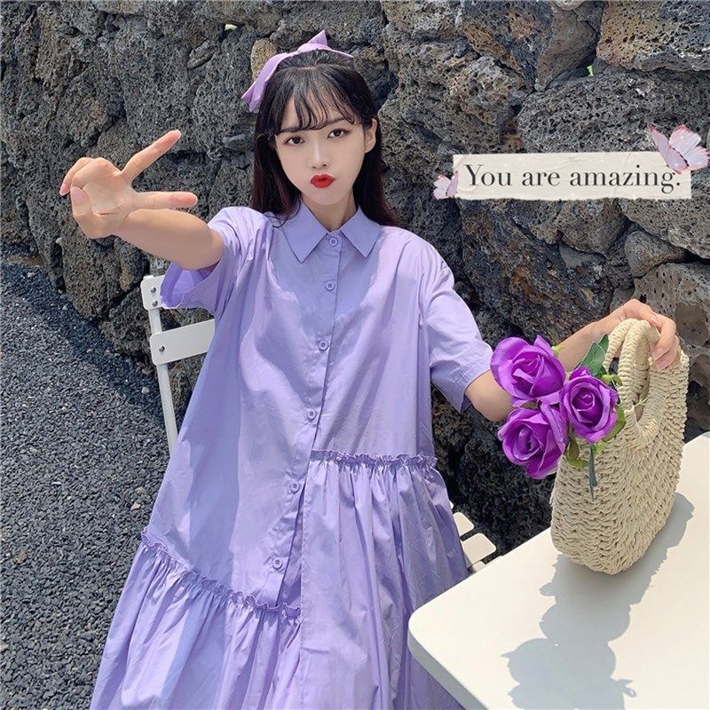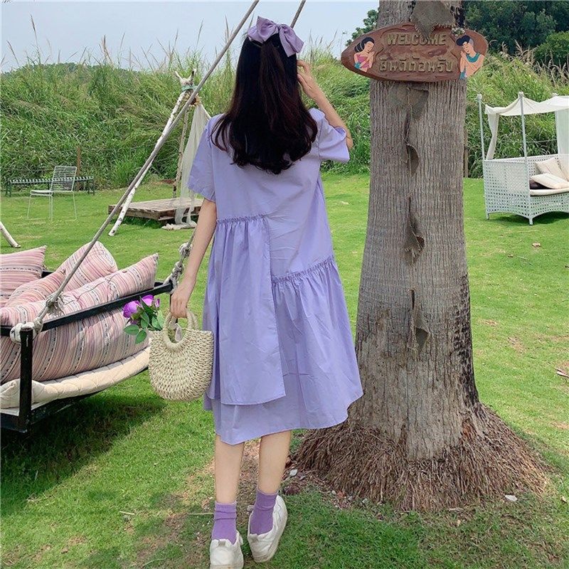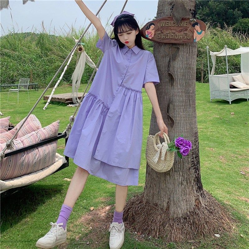 女大童紫色裙子夏装12初中学生13不规则15岁法式森系16少女连衣裙
