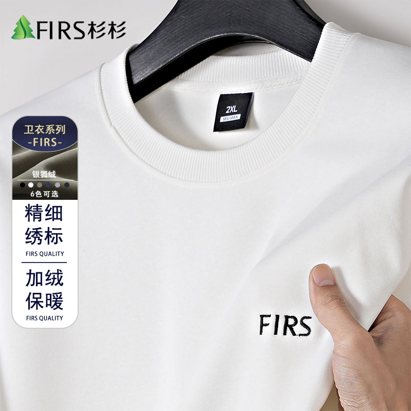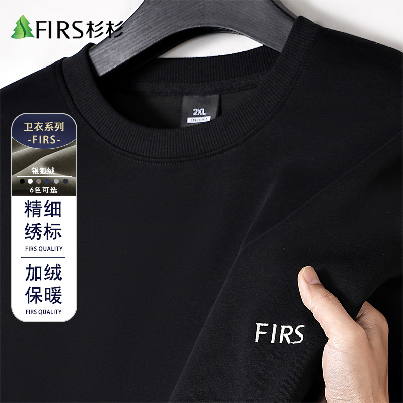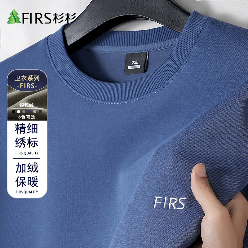 杉杉新款卫衣男圆领长袖体恤衫加绒加厚秋冬季休闲保暖打底上衣男