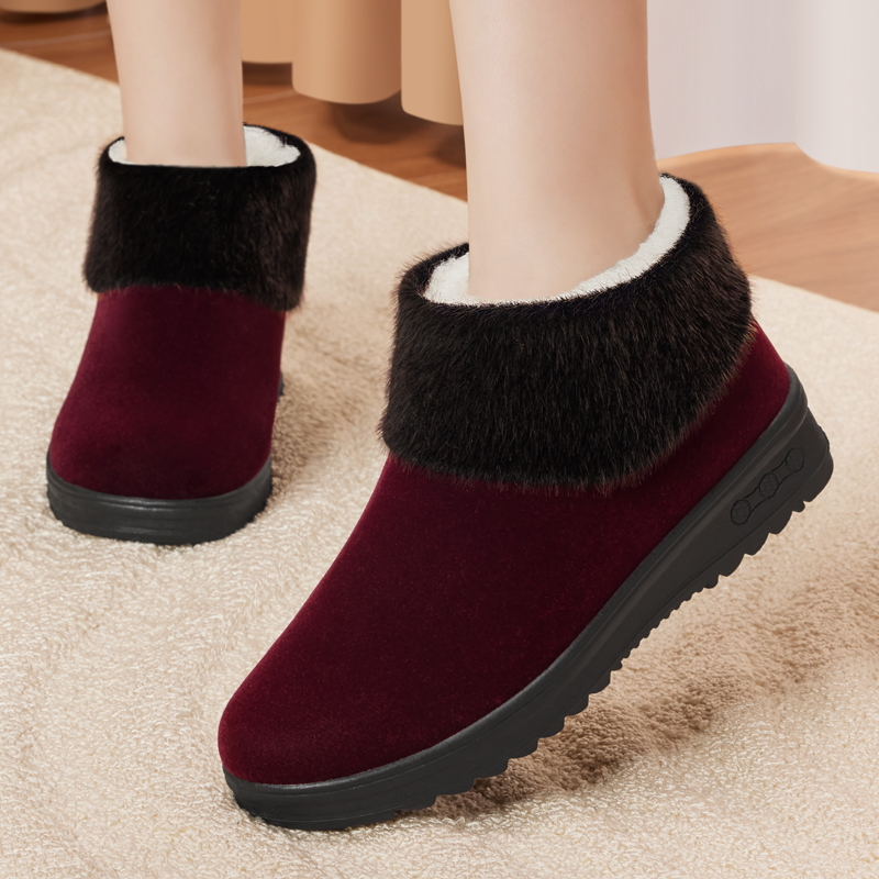 老北京棉鞋女秋冬新款加绒加厚羊毛保暖棉鞋中老年防滑舒适妈妈鞋
