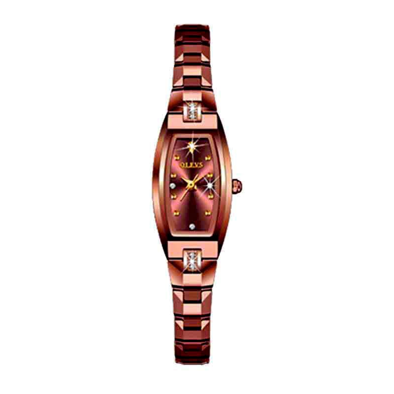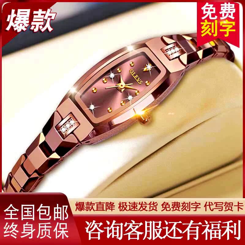 2024新款瑞士品牌女士名牌复古方形手表女款小巧钨钢金色女表防水