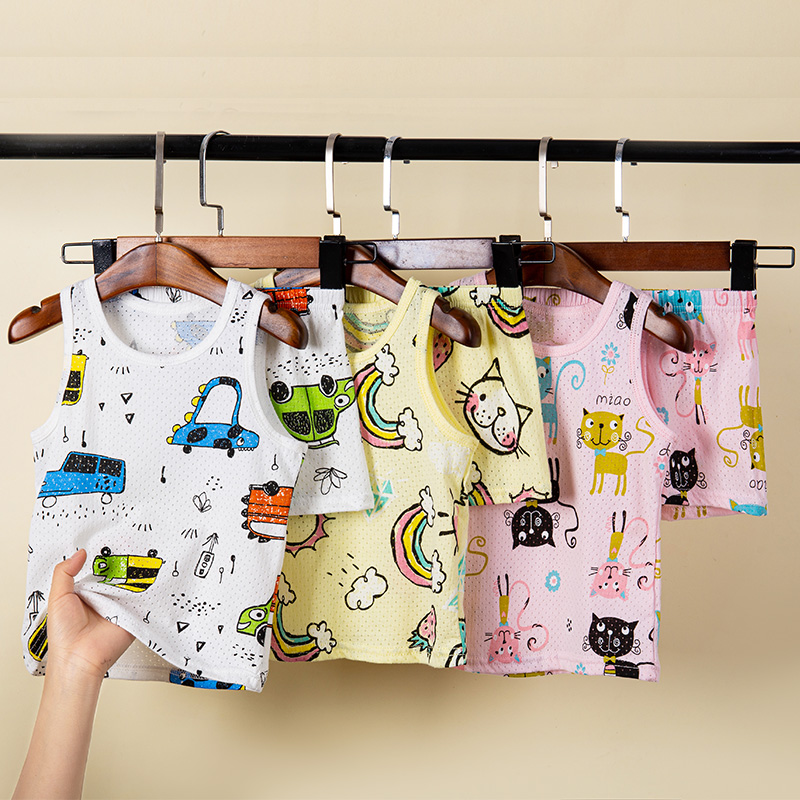 儿童背心套装纯棉网眼卡通无袖夏