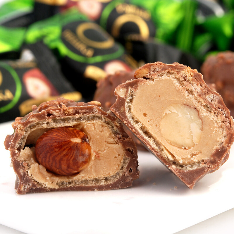 俄罗斯榛仁巧克力糖整颗榛子杏仁夹心休闲零食品年货喜糖进口