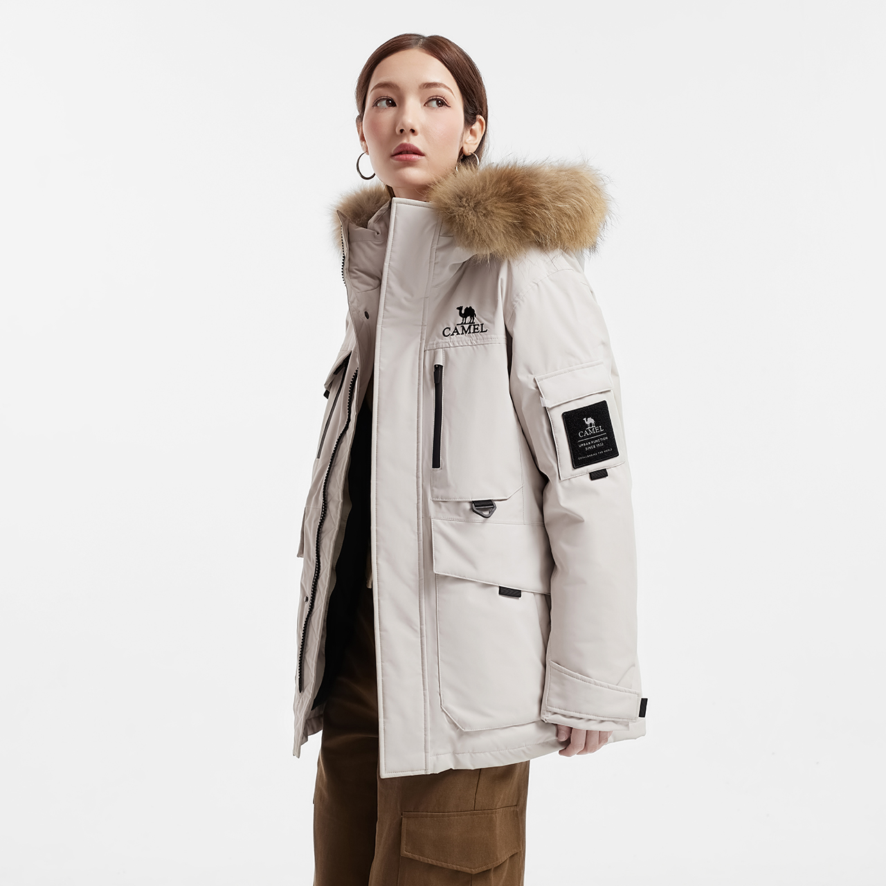 鹅绒︱骆驼羽神Ultra女装工装派克羽绒服冬新款毛领加厚羽绒外套