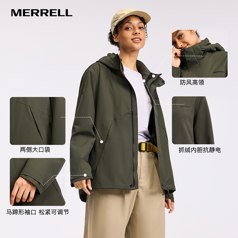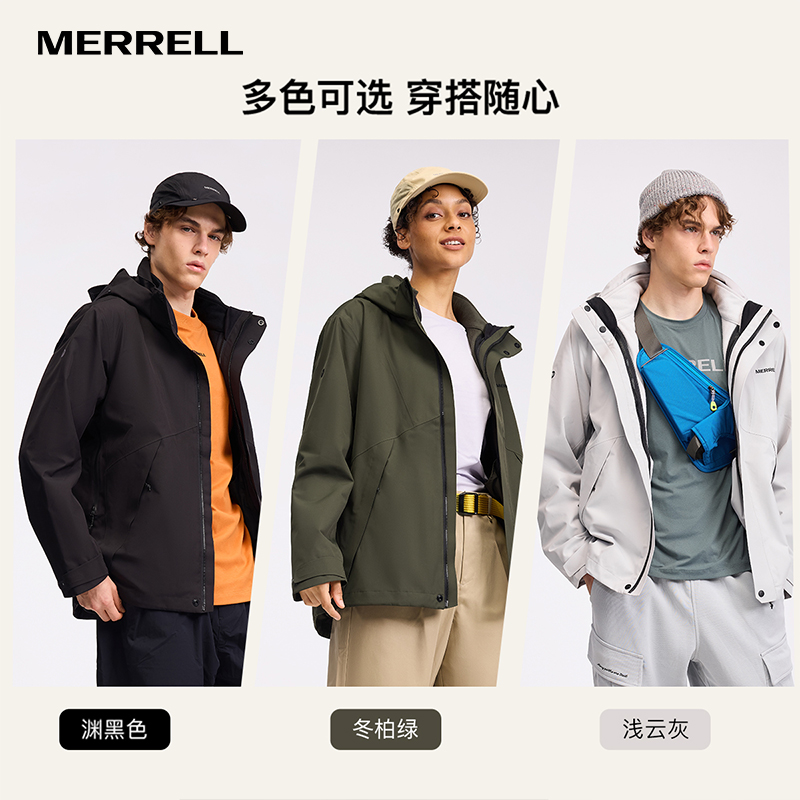 MERRELL迈乐川鳞|防水三合一抓绒冲锋衣男摇粒绒保暖户外运动外套