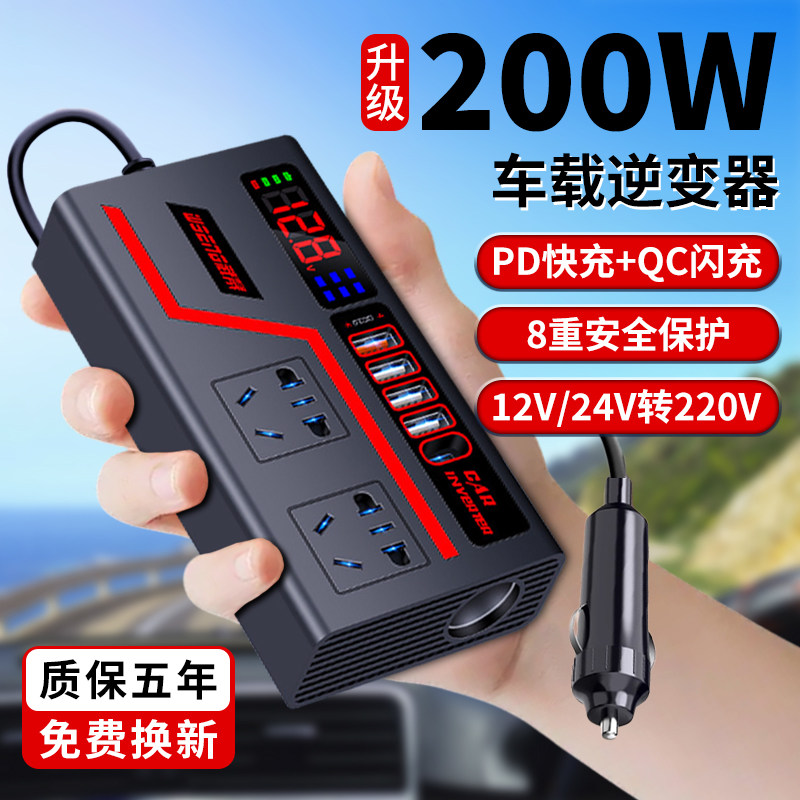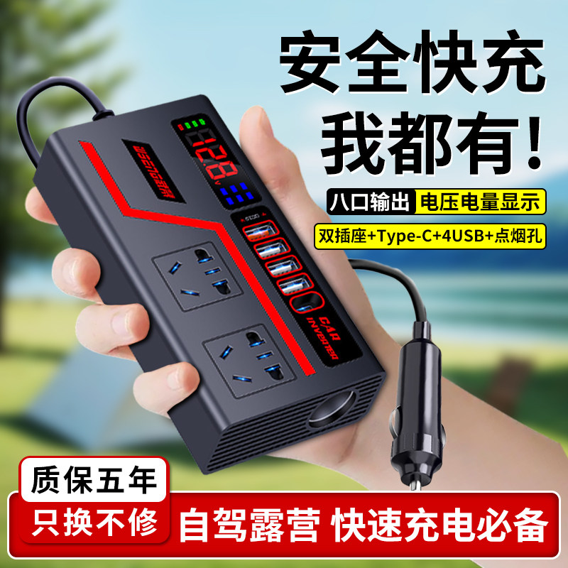 车载逆变器12V/24V转220V快充