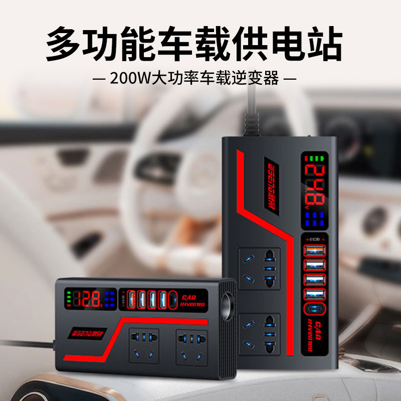 车载逆变转换器12v24v转220v大功率快充电器多功能点烟器电源插座