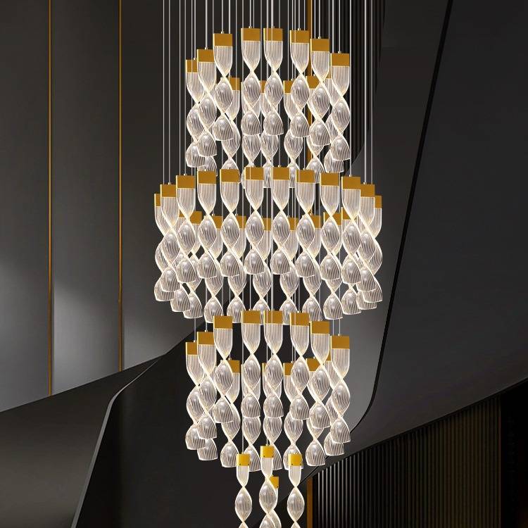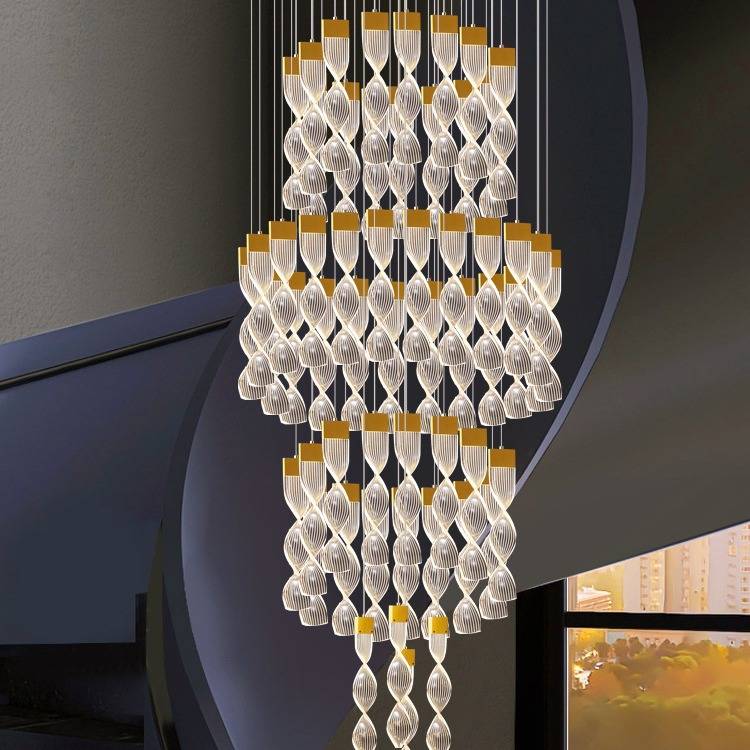 复式楼loft中空客厅灯别墅楼梯吊灯2021年新款挑空大厅亚克力吊灯