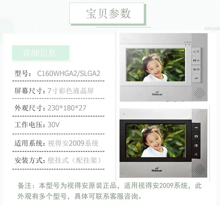 视得安2009系统彩色分机7寸可视分机对讲门铃电话视得安C160SLGA2