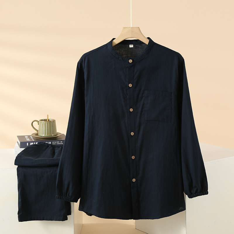 日系无印风双层全棉纱布情侣睡衣