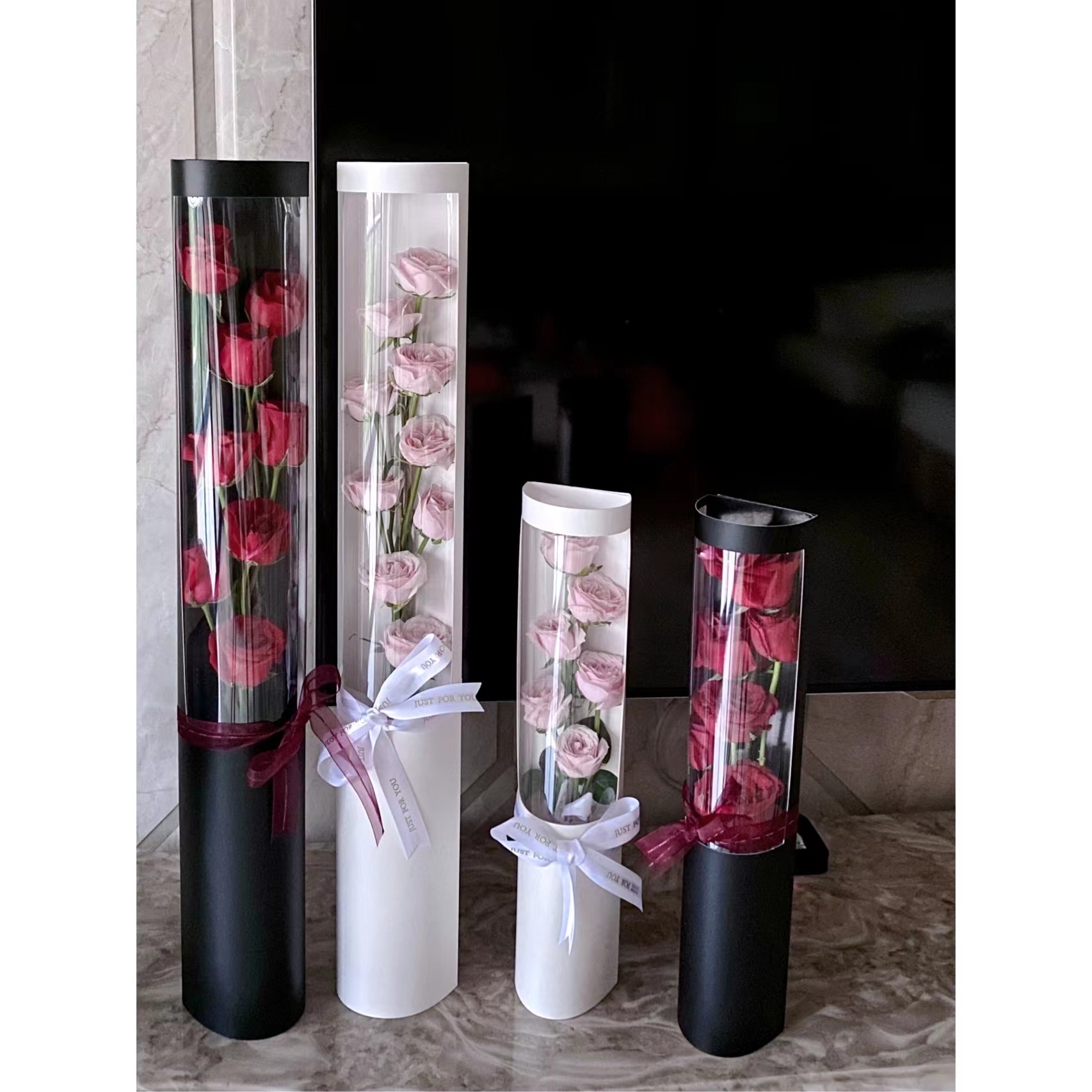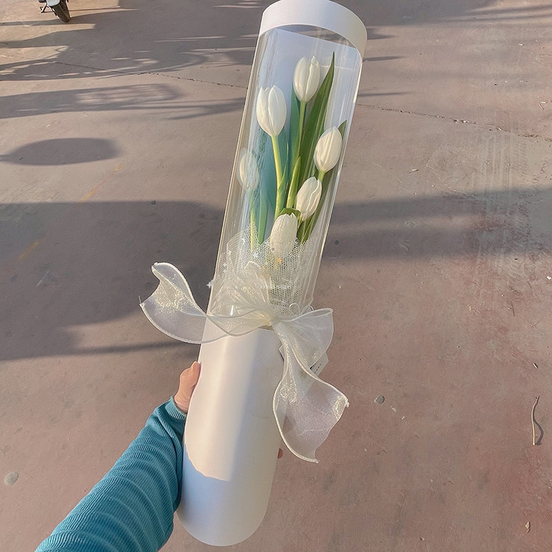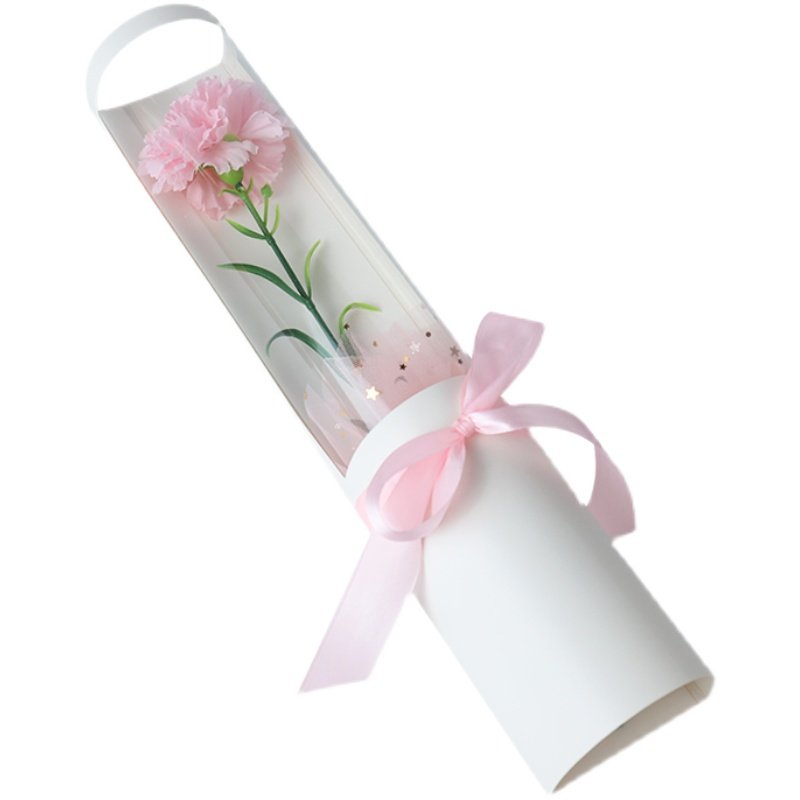 情人节花盒透明包装盒康乃馨郁金香单只支花束半圆形pvc鲜花礼盒