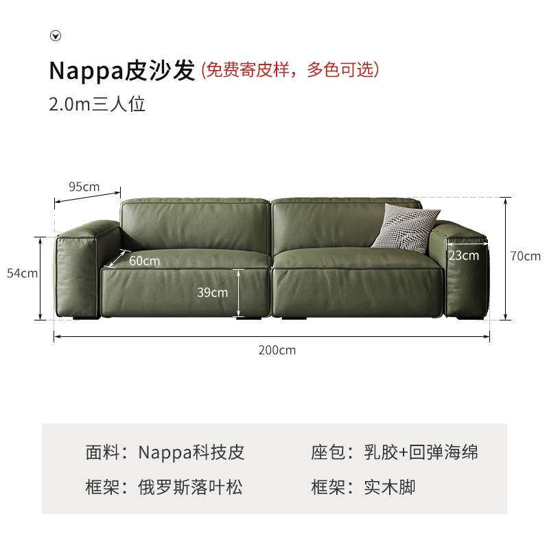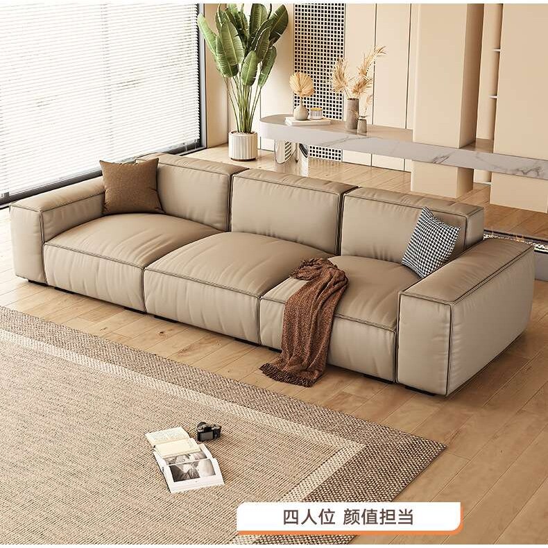 意式极简豆腐块沙发真皮客厅组合现代简约直排三人位皮艺沙发家具