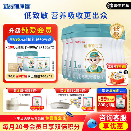 宜品蓓康僖启铂新生婴幼儿配方羊奶粉1段0-6月宝宝800g*6罐绵羊奶