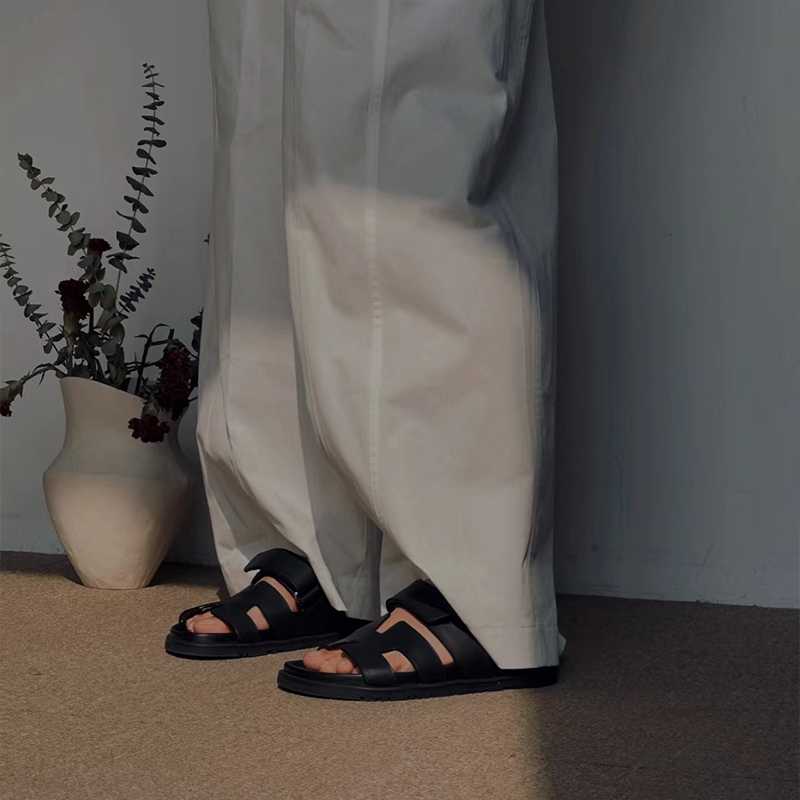莫人复古手工二舅鞋厚底拖鞋女一字带平底凉鞋新款夏季外穿女