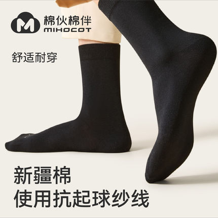 棉伙棉伴棉中筒袜抗起球男女纯色透气舒适耐穿日常百搭