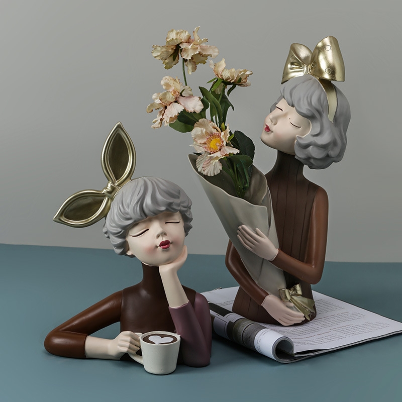 泡泡捧花女孩轻奢高档创意客厅桌面摆件床头柜装饰品插花新婚礼物