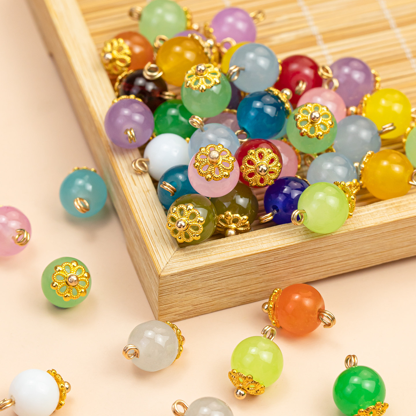 旗袍盘扣扣子新中式圆形仿玉石花托纽扣汉服唐装手工装饰珠扣配件