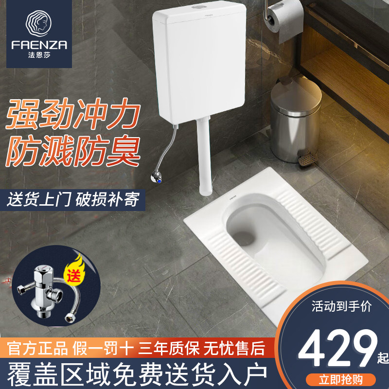 法恩莎蹲便器家用蹲坑式蹲厕整套卫生间隐藏式暗装水箱厕所大便器