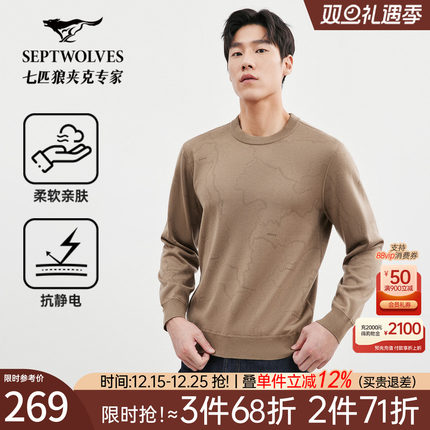 七匹狼男士毛衣2025新款秋冬季加厚中年圆领打底针织羊毛衫男装潮