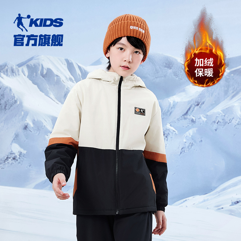 乔丹童装男童加绒外套春秋2025新款大童摇粒绒风衣运动儿童户外服