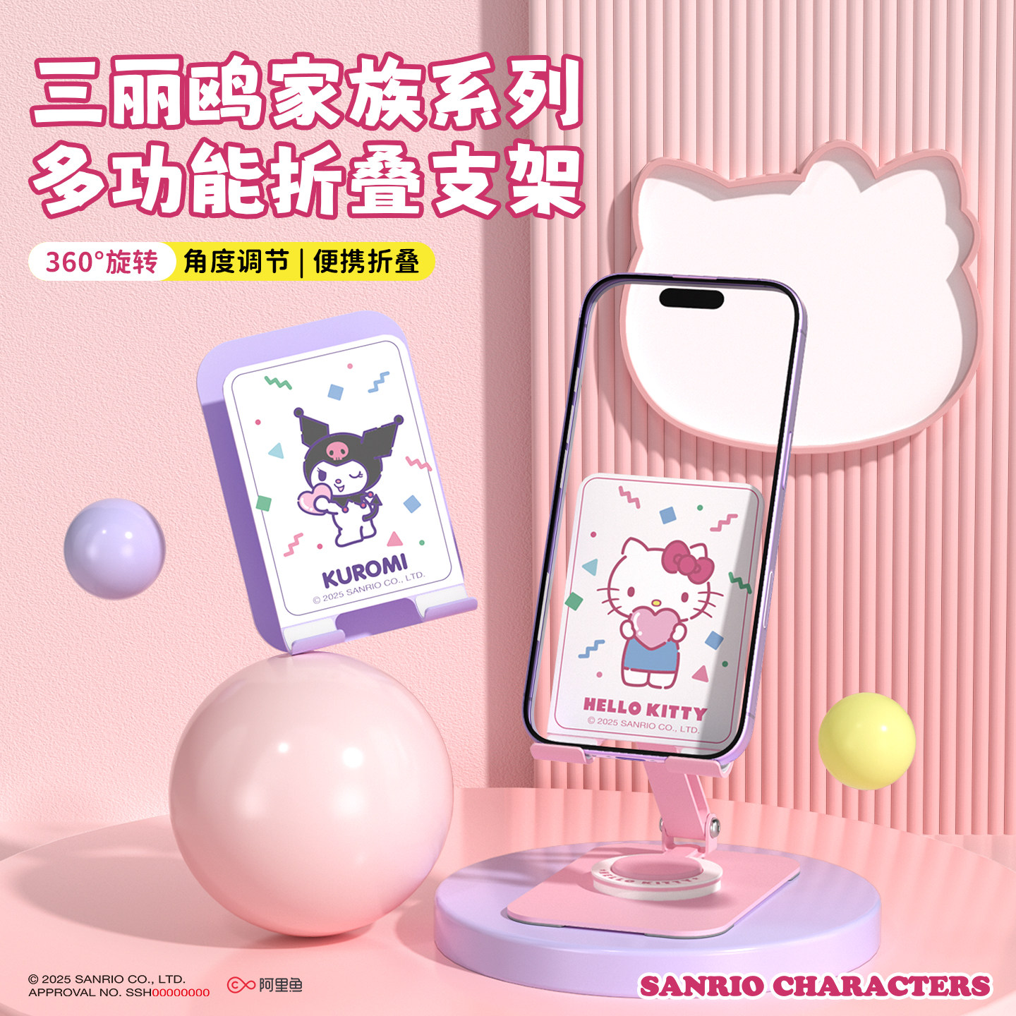 三丽鸥正版手机支架360°旋转桌面支架卡通可爱手机平板通用折叠