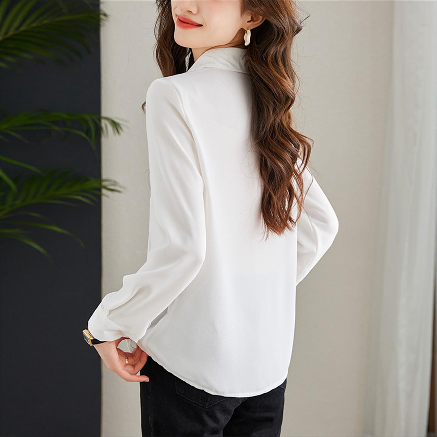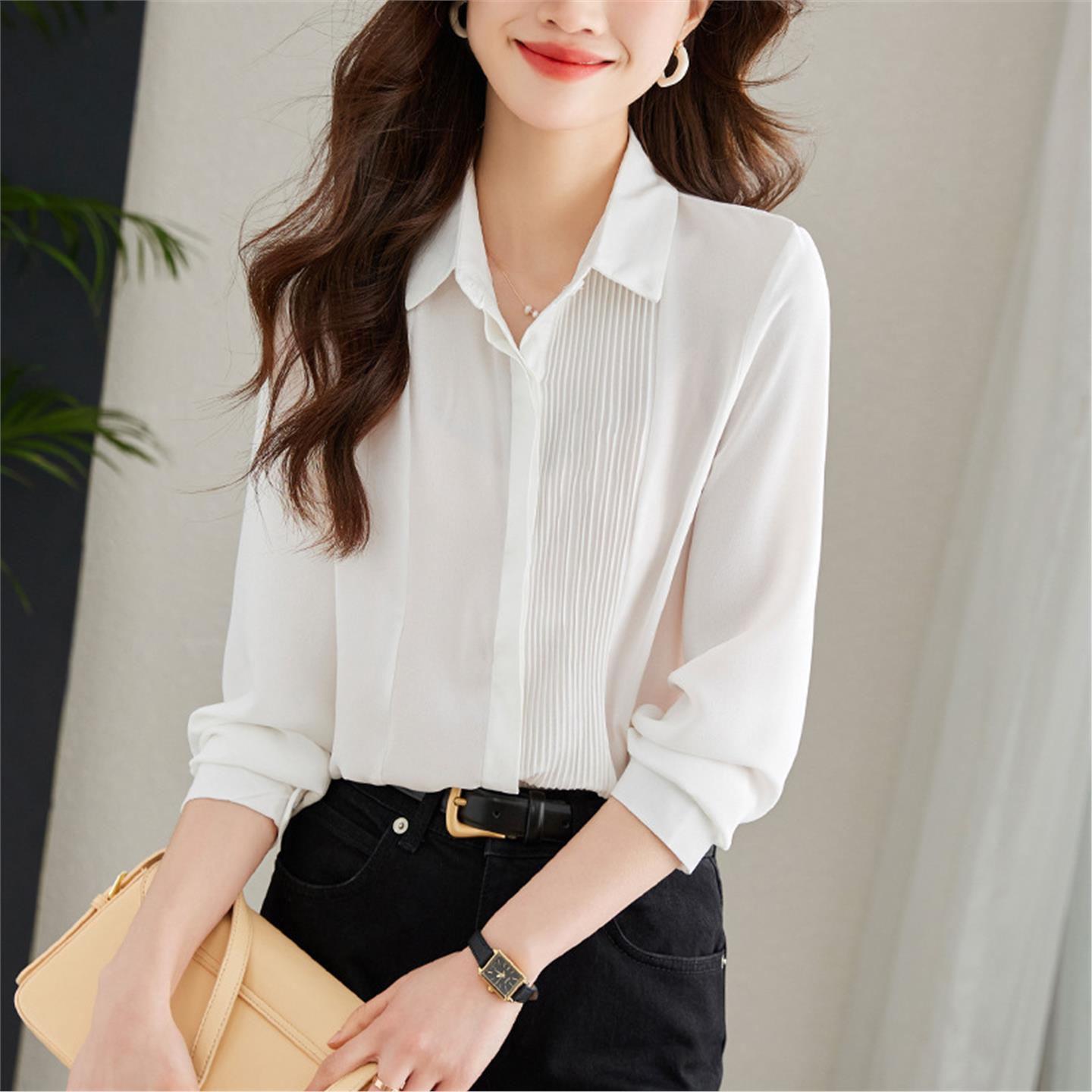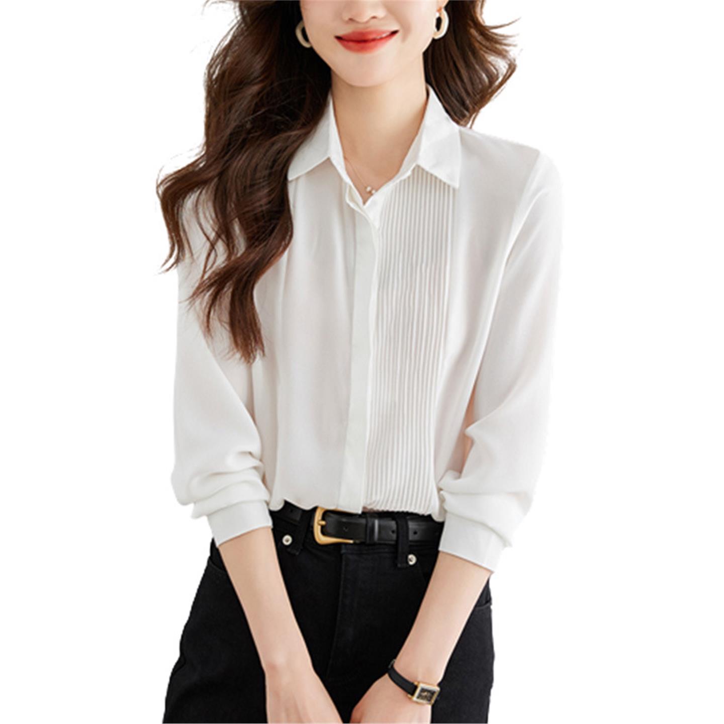 雪纺衬衫女长袖2025新款风琴褶上衣设计感小众衬衣通勤风气质
